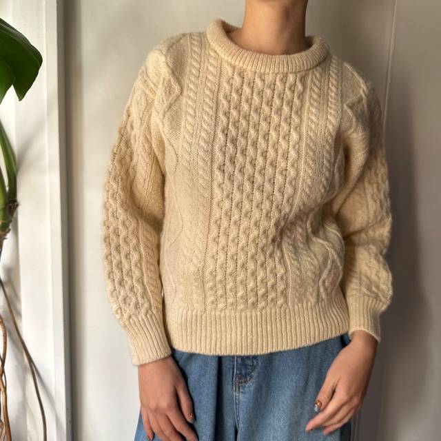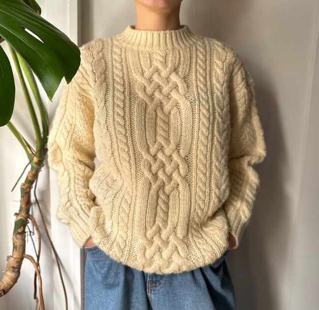 【size】 平置き:身幅51cm、肩幅50cm、袖丈56cm、身丈67cm ※多少の誤差がある場合がございます。 カラー: ivory 素材 : wool 100 モデル身長162cm ※コーディネートに使用しているアクセサリー類も販売可能ですので、ご希望があればお問い合わせくださいませ。 【details】 ・白T感覚でどんなスタイリングにも馴染む、冬の定番フィッシャーマンニットセーター。 恐らく1970年代頃のアイルランドのお品物です。 ・こちらはゆったりとした目付けで編まれているので、軽くて柔らかい質感で着心地もとっても快適です。 ・ややハイネックになっているのも品があって素敵です。 【condition】 目立った汚れやダメージはありません。 *当店の商品は一部を除き古着・used品です。 特性上、汚れ、ほつれ、スレ、生地の傷み、サビ、匂い、縫製不良などがある場合がございます。 また、使用にあたり、現時点では確認できないダメージがある可能性もあります。 お選びの際はコンディションをご理解の上お買い求め下さい。 またミリタリー商品はアイテムによって使用している付属や仕様、素材の色が異なることがございます。 *配送方法をレターパック、こねこ便にされた場合、日時指定はできかねます。 (システム上日時指定できてしまいますが、実際は承ることができません) *ご覧いただいているモニターにより色の出方が異なる場合がございます。 *商品の劣化、ほつれ、色落ち、汚れ、イメージと違った、などの理由での返品、交換はお断りしています。 気になる点は必ずご購入前にお問い合わせ下さい。 *ご注文後のキャンセルは承れません。 *環境問題の観点によるペーパーレス化のため、納品書は同梱しておりません。納品書、または領収書をご希望の方は備考欄にご記入くださいませ。 *レターパックライトに配達補償がございません。 配達事故が起きた場合、 いかなる理由(紛失、盗難、破損など)でも代替え商品の発送や返金など行っておりません。 ご了承頂けるお客様のみご利用ください。