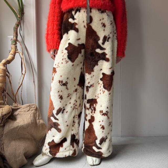 【dead stock】 cow pattern shaggy fleece wide leg pant