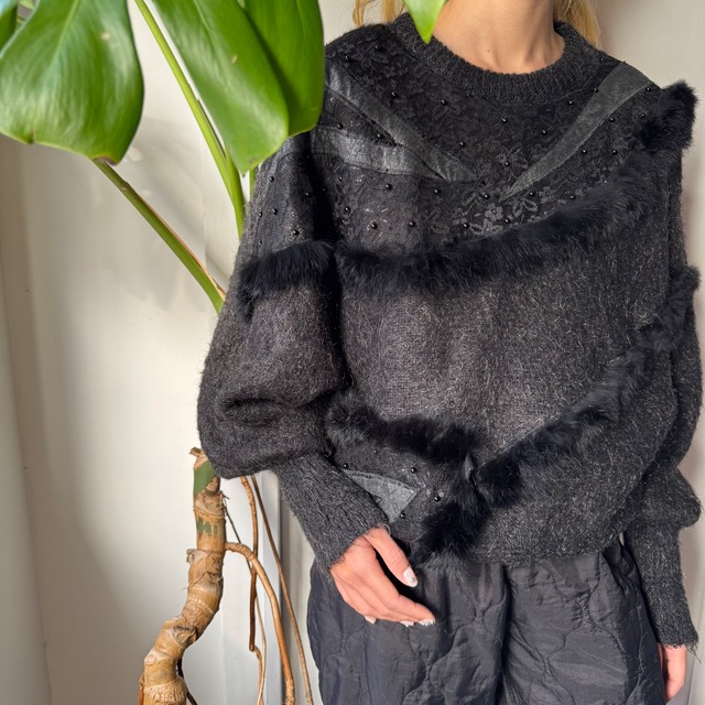 80’s angora fur × mohair × shaggy knit mix yarn sweater