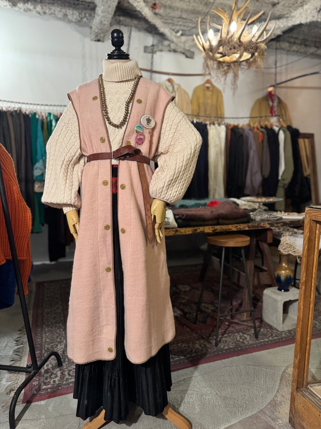 【size】 平置き:身丈115cm ※多少の誤差がある場合がございます。 カラー: ivory(トルソーに着せている色が実物に近いです) 素材 : 不明 ※コーディネートに使用しているアクセサリー類も販売可能ですので、ご希望があればお問い合わせくださいませ。 バッヂ類は別売りとなります。 【details】 ・1970年代のフランス軍のライナーベストです。 少しピンクがかったアイボリーカラーが印象的で、柔らかなコーディネートに仕上げてくれます。 ・ロングベスト、非常に使い勝手が良いです。 従来のコーディネートにプラスしたり、お手持ちのアイテムに追加するだけで、マンネリ化していたファッションに新鮮さを与えてくれます。 ニットに羽織ったりアウターに羽織ったりアウターのインに着たり、、、 夏以外の3シーズンお使い頂ける万能アイテムです。 ・素材も起毛がかった柔らかな素材ですので、重すぎずサラッと羽織って頂けます。 上からベルトを巻いてシルエットにメリハリを付けても可愛いです。 【condition】 目立った汚れやダメージはありません。 *当店の商品は一部を除き古着・used品です。 特性上、汚れ、ほつれ、スレ、生地の傷み、サビ、匂い、縫製不良などがある場合がございます。 また、使用にあたり、現時点では確認できないダメージがある可能性もあります。 お選びの際はコンディションをご理解の上お買い求め下さい。 またミリタリー商品はアイテムによって使用している付属や仕様、素材の色が異なることがございます。 *決済方法をコンビニ決済(Pay-easy)・銀行振り込みを選択された場合、ご決済及びご入金の確認が取れるまで店頭、オンラインで併売致します。その間に売切れる場合がありますことをご了承くださいませ。 ご決済・ご入金予定日を予めご連絡頂ける場合はお取り置きさせていただきます。 *ご覧いただいているモニターにより色の出方が異なる場合がございます。 *商品の劣化、ほつれ、色落ち、汚れ、イメージと違った、などの理由での返品、交換はお断りしています。 気になる点は必ずご購入前にお問い合わせ下さい。 *ご注文後のキャンセルは承れません。