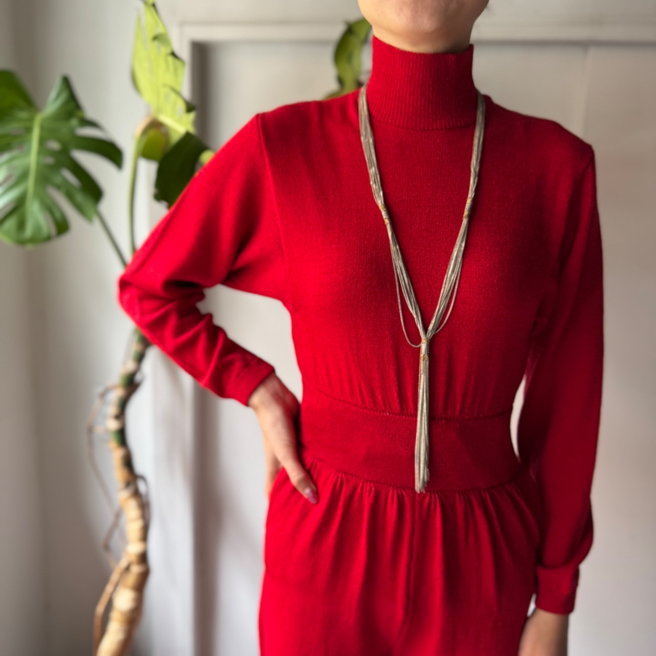 ・着るだけで気分がアガる、艶やかな真紅のジャンプスーツ。