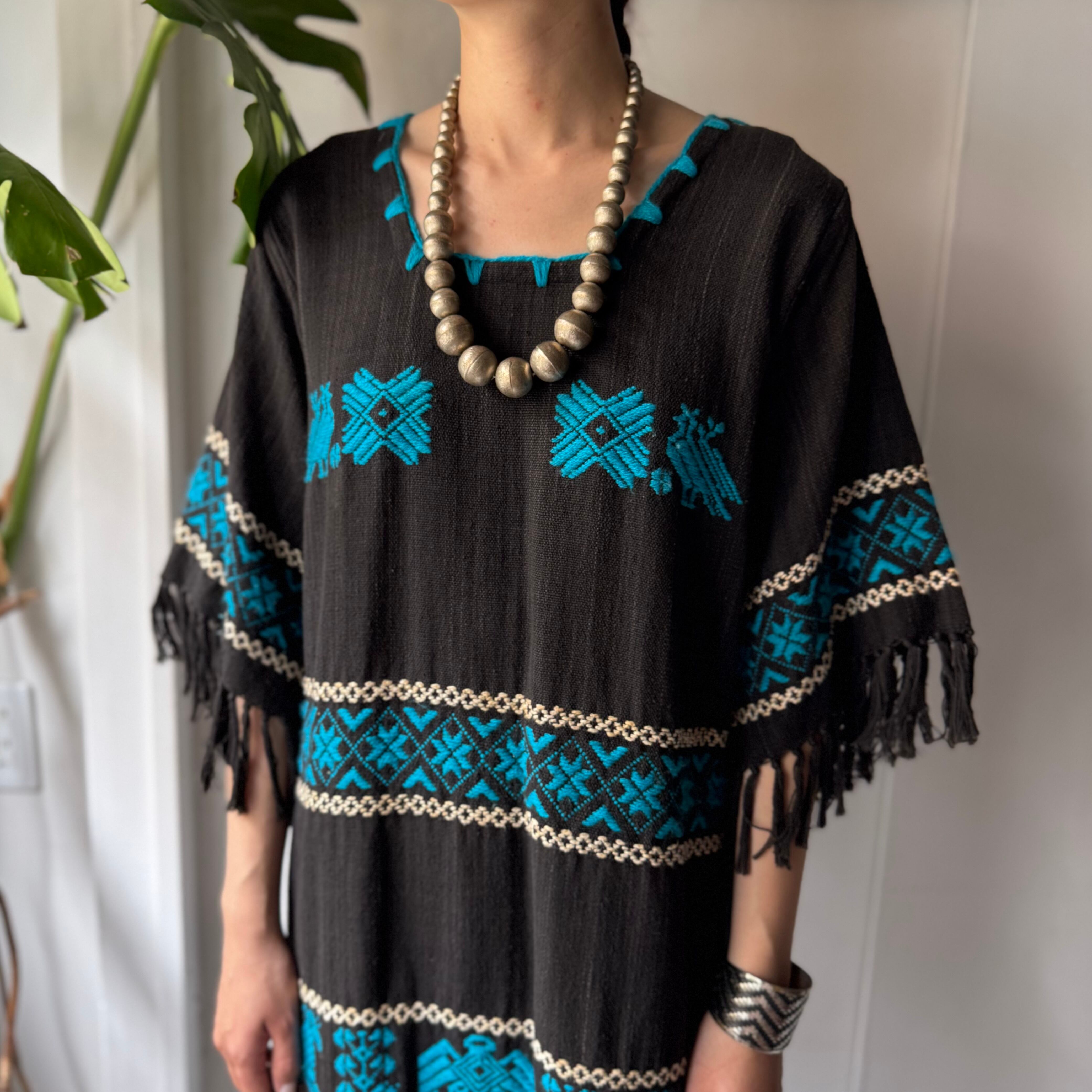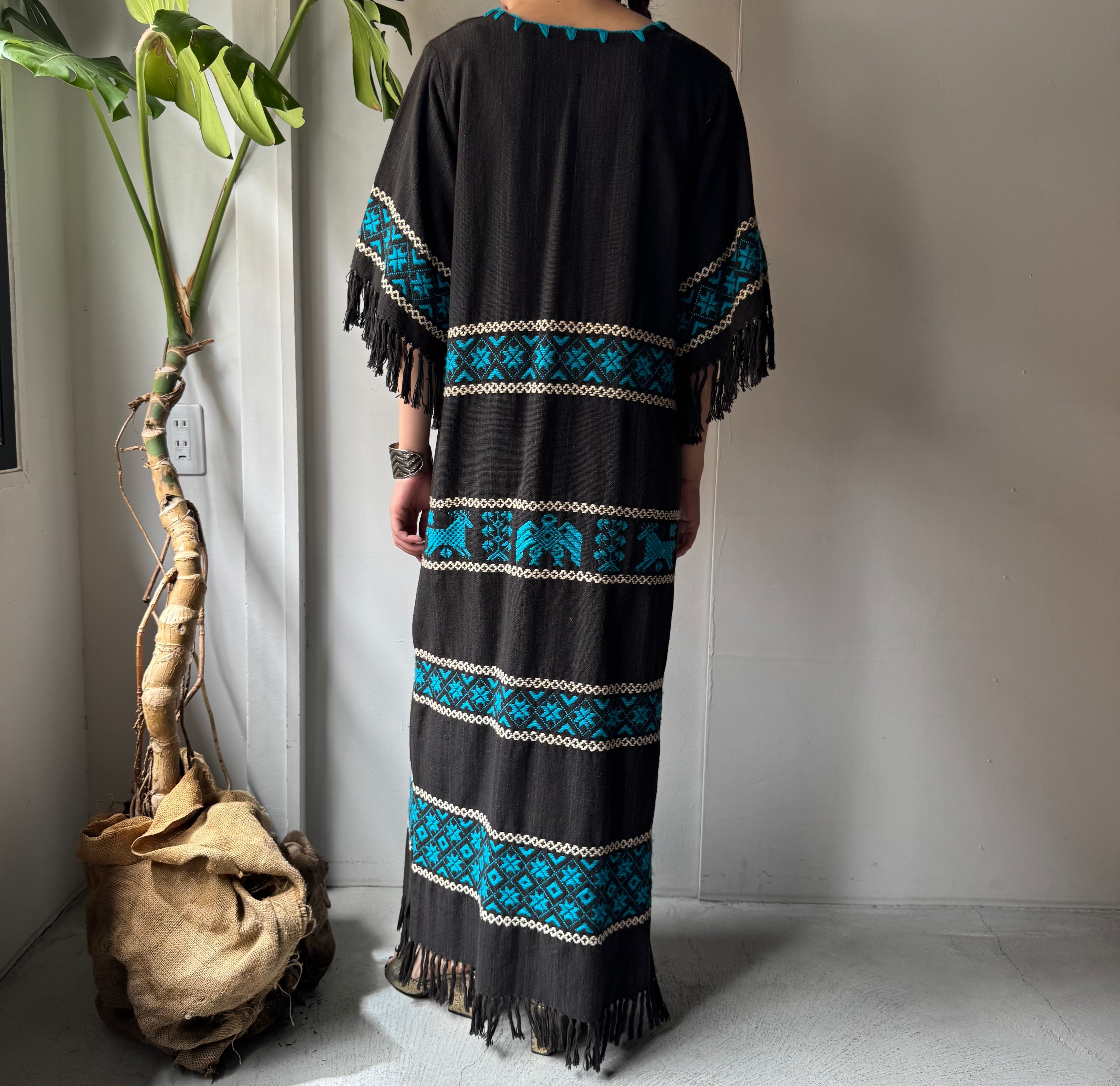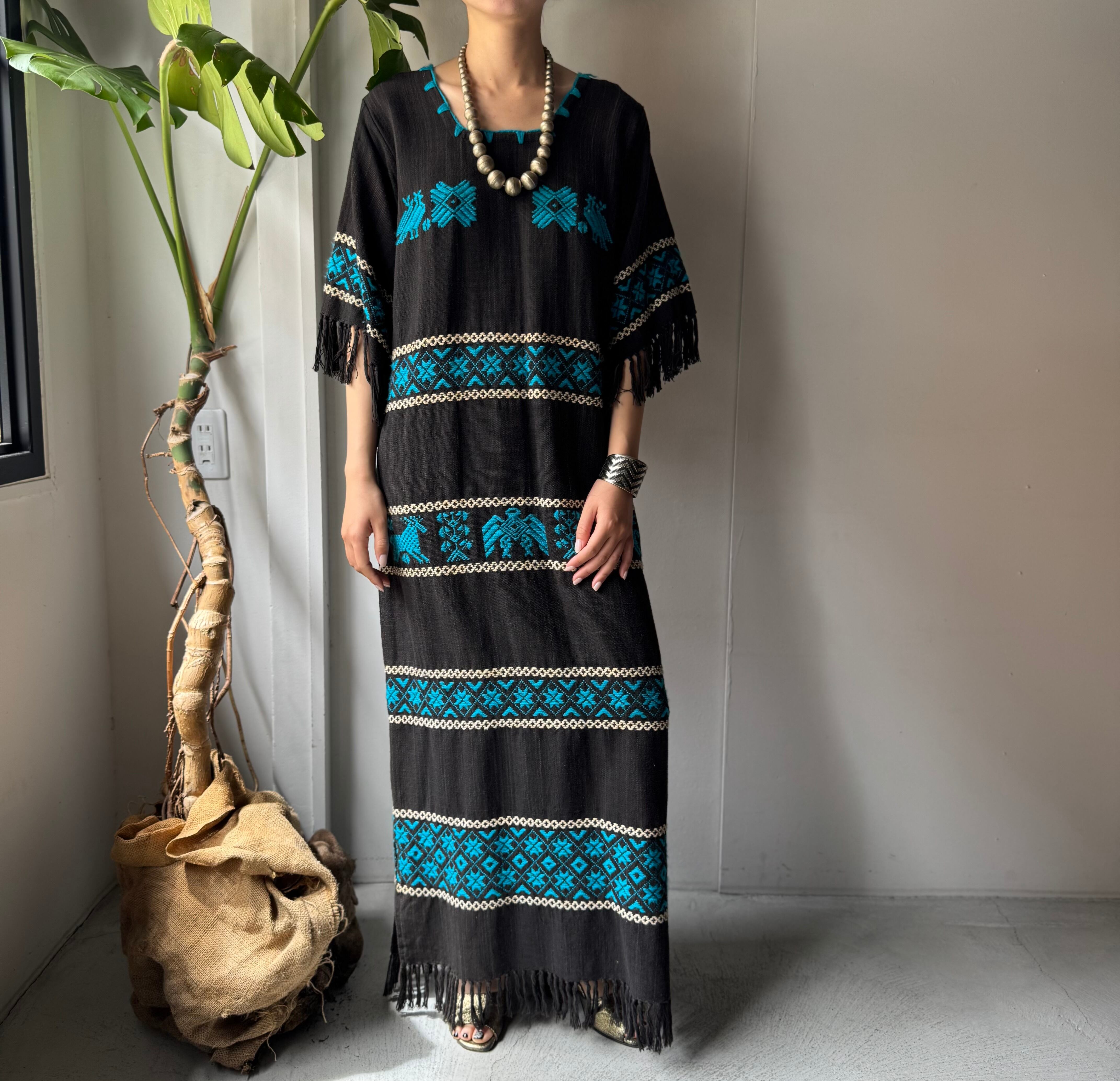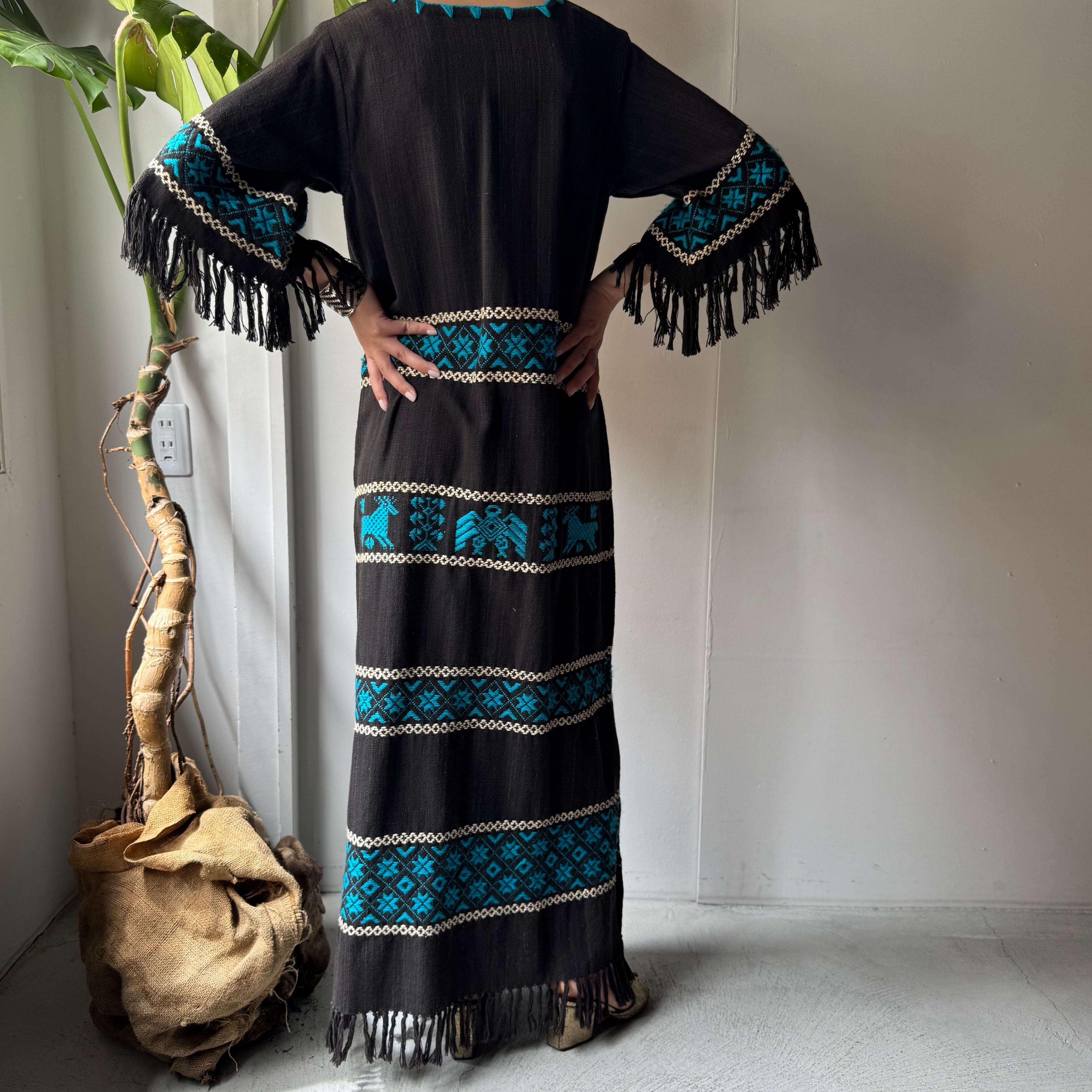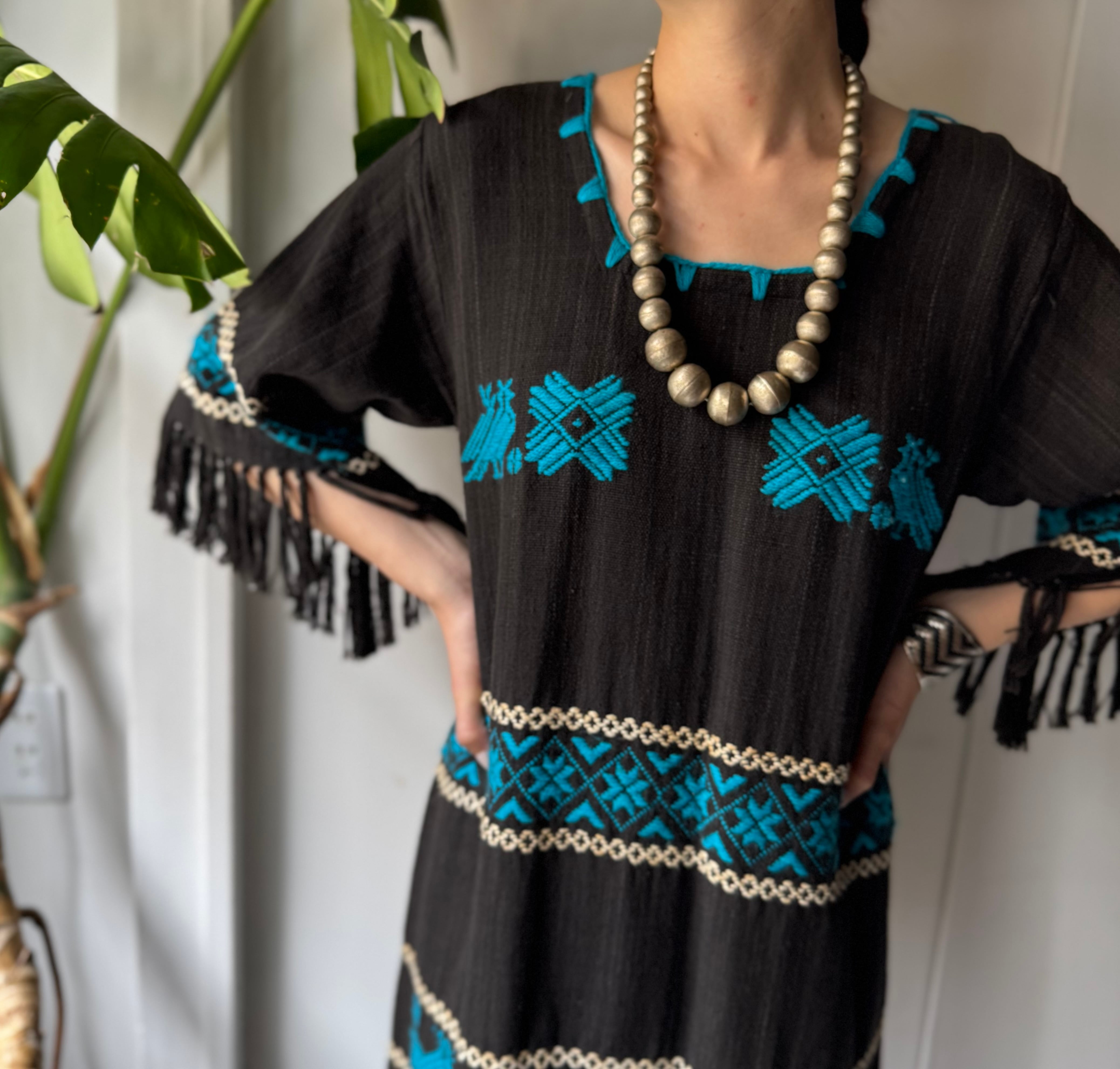 60~70’s vintage from Guatemala woven cotton fringe dress