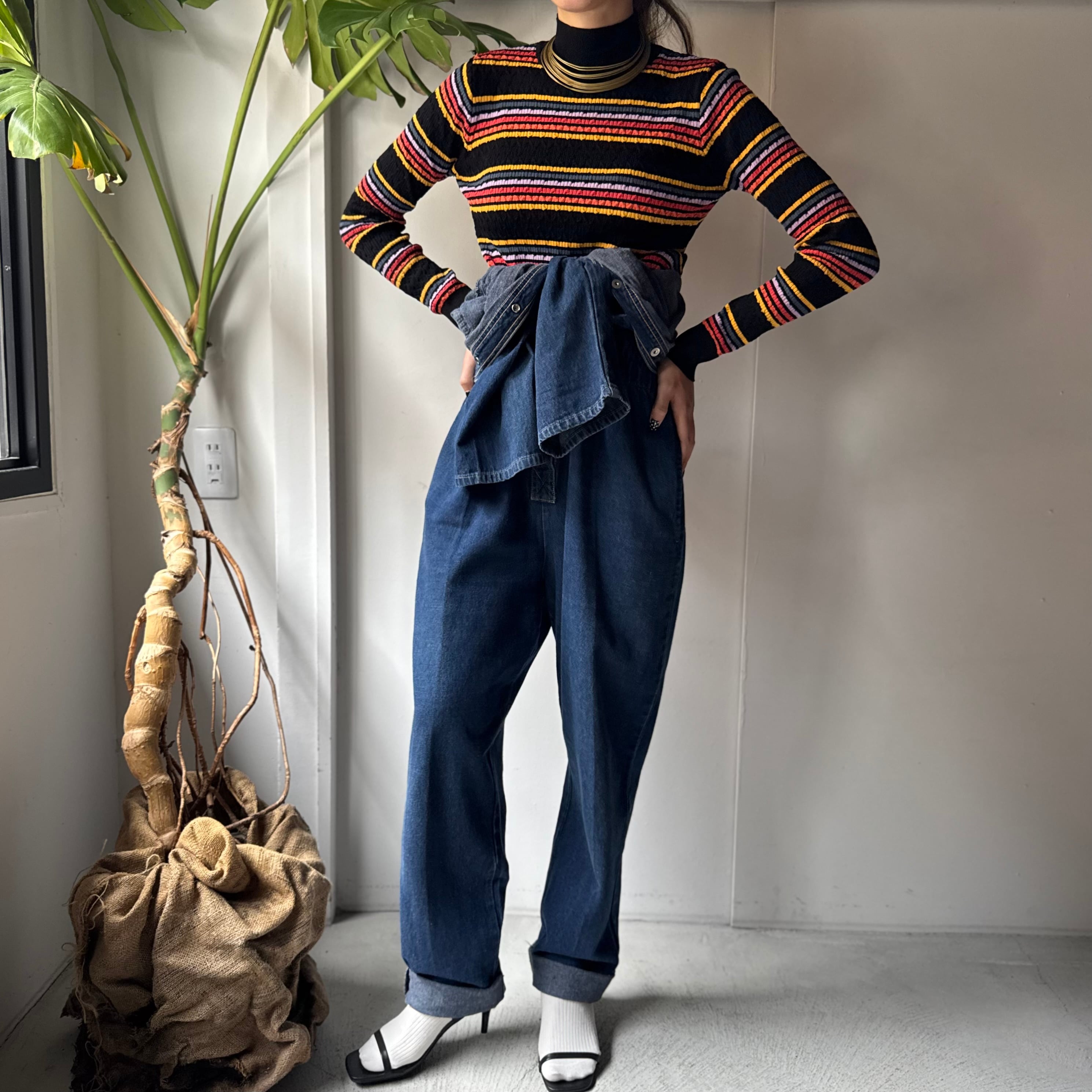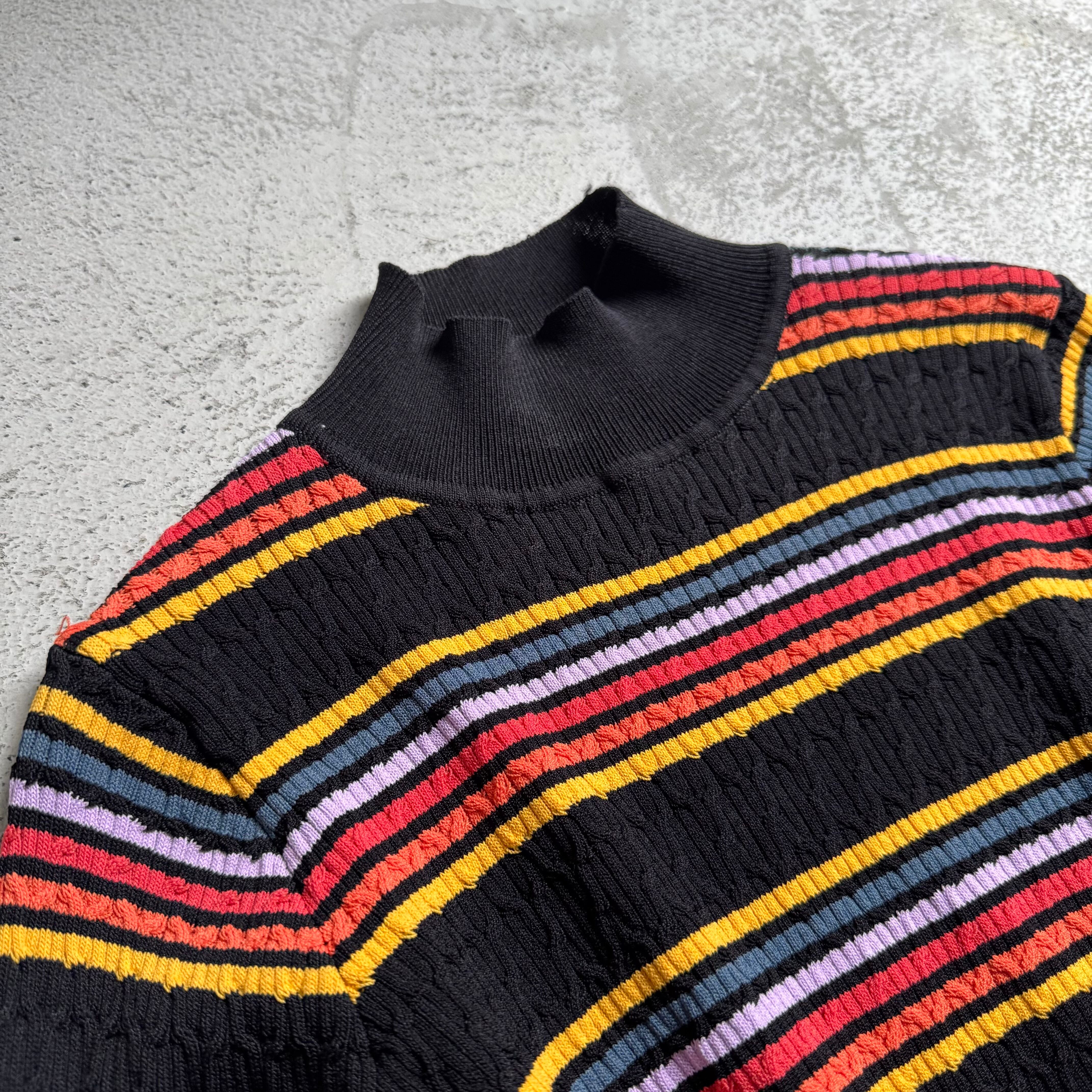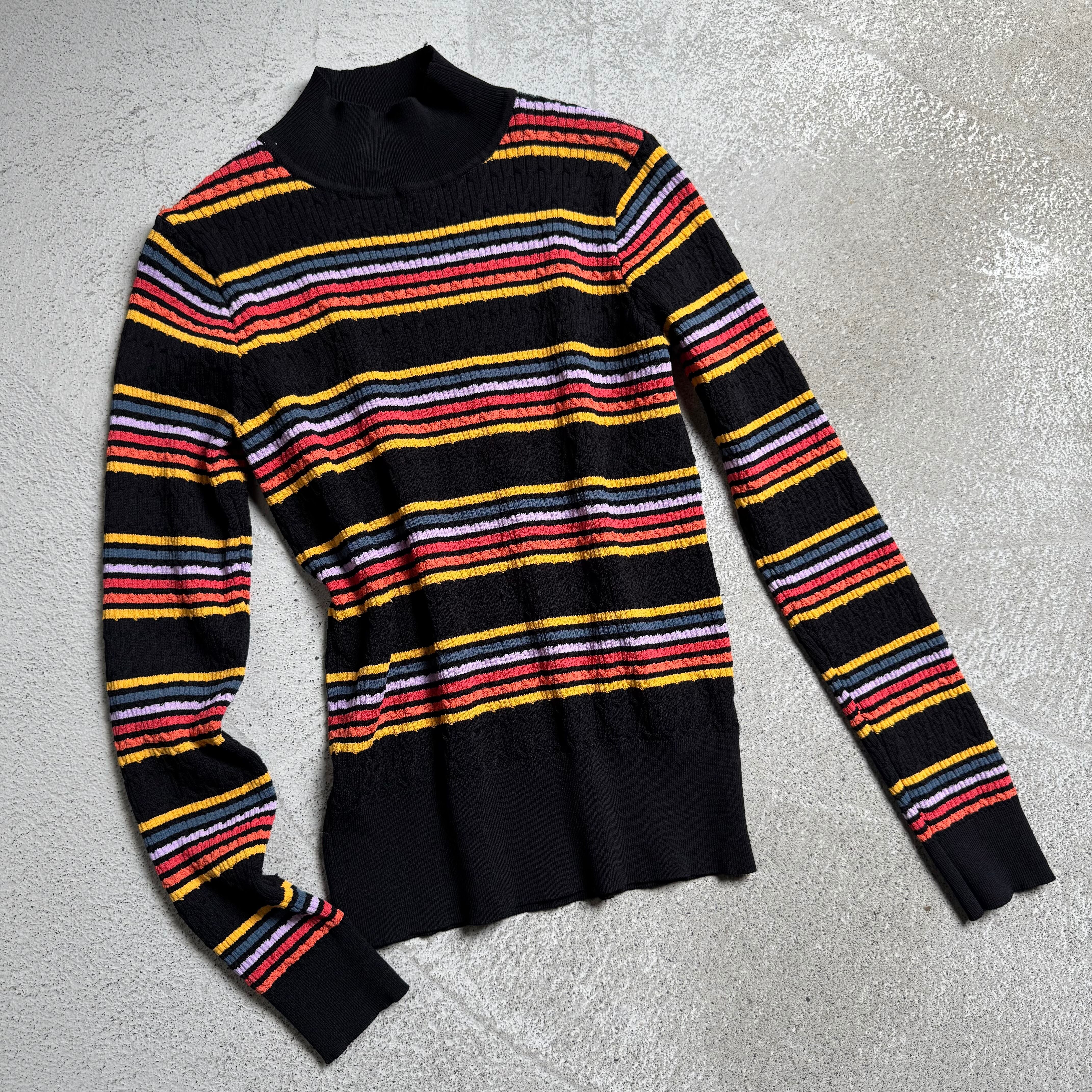 程よいハイネックが、カジュアルなボーダーの雰囲気を品よく昇華してくれ、様々なスタイリングに馴染むかと思います。