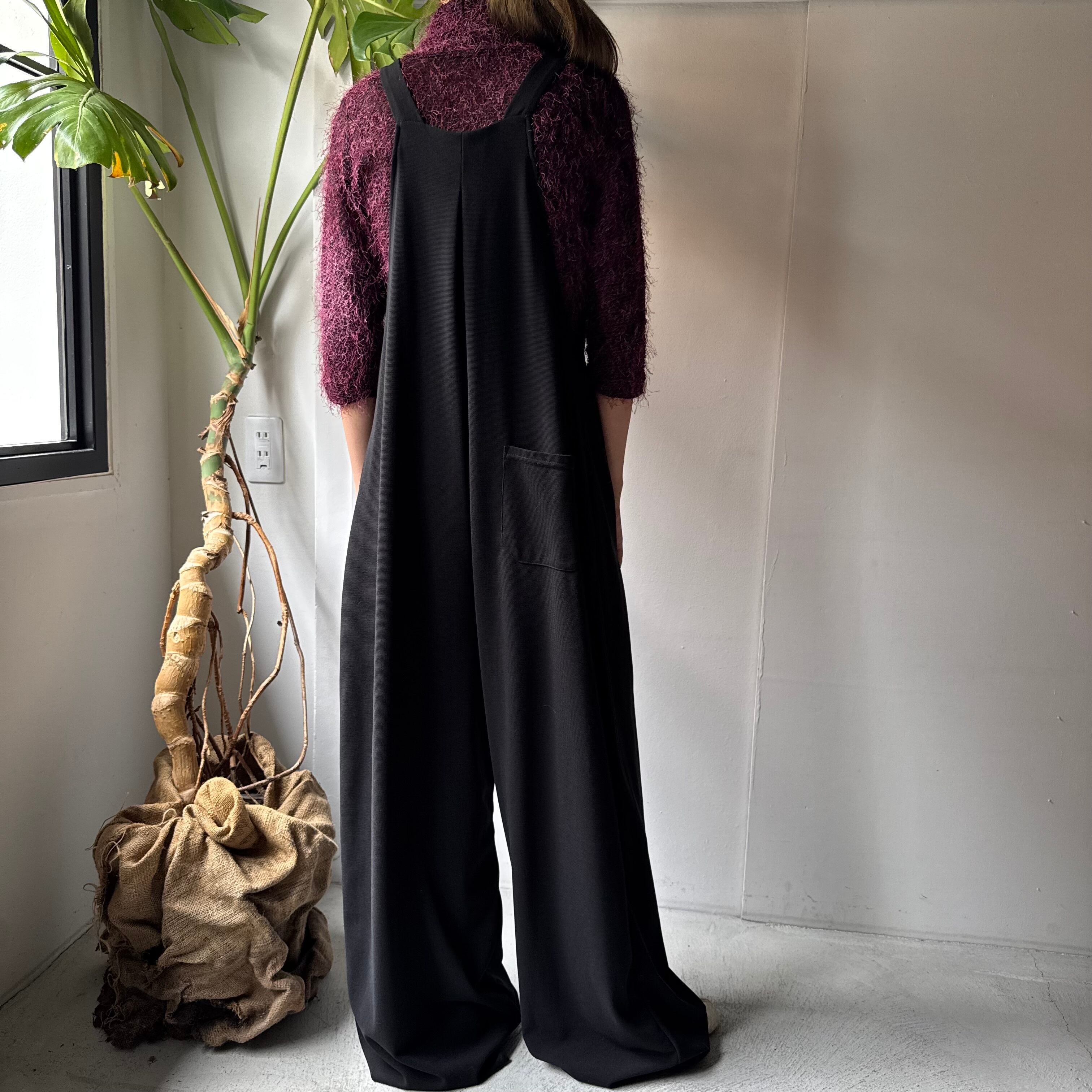 ・放射状に広がるタックから生みだされるドレープが芸術的に美しいサロペット。