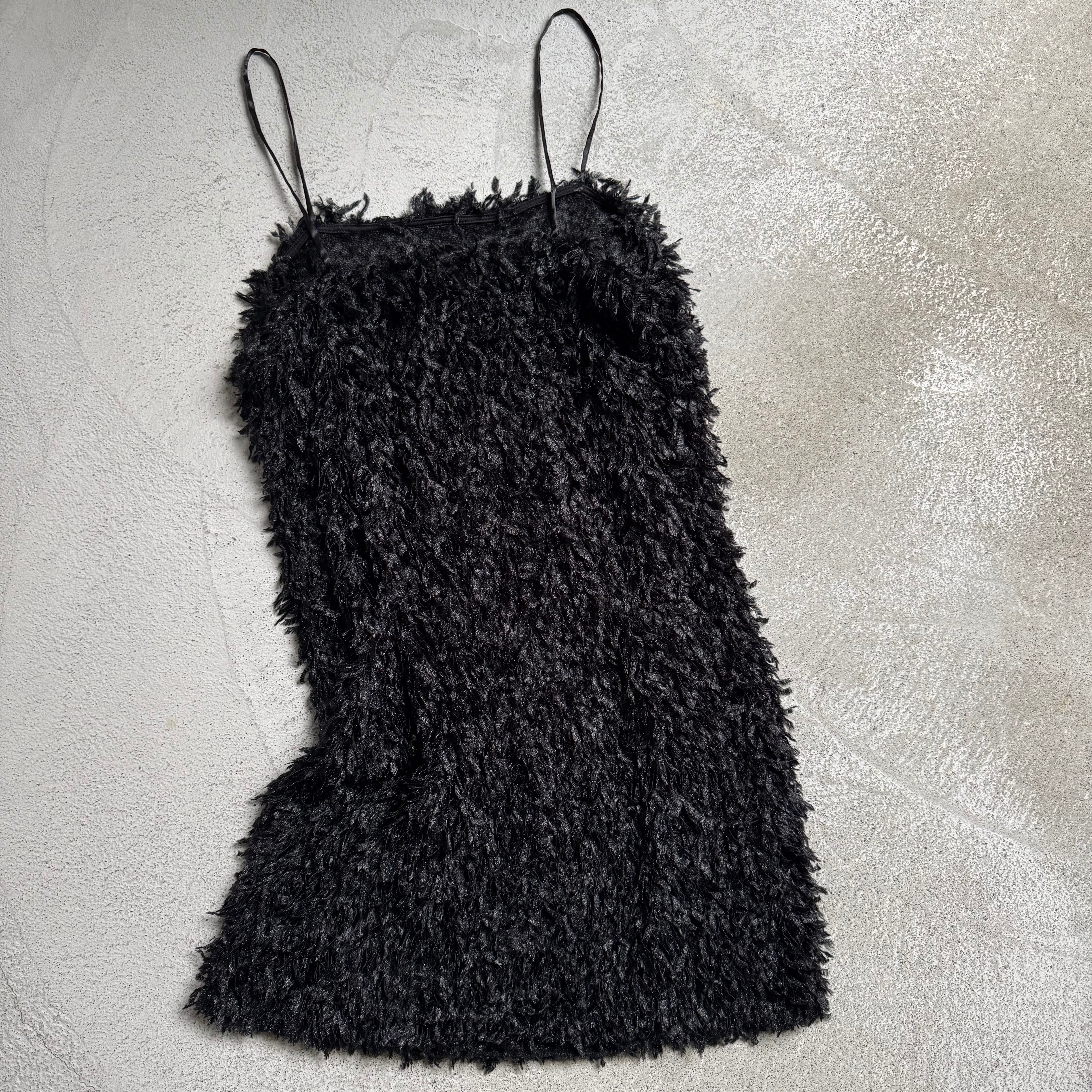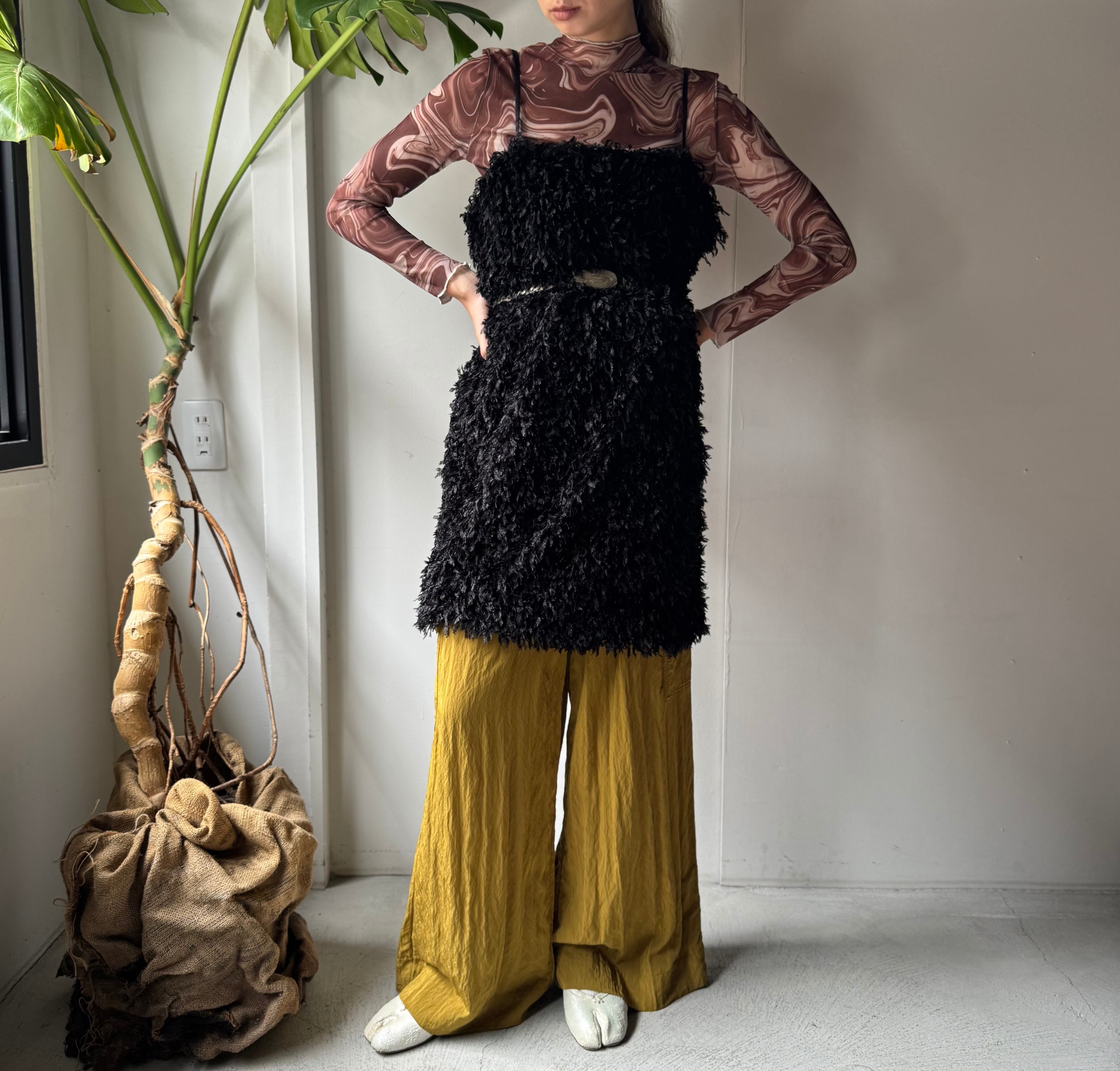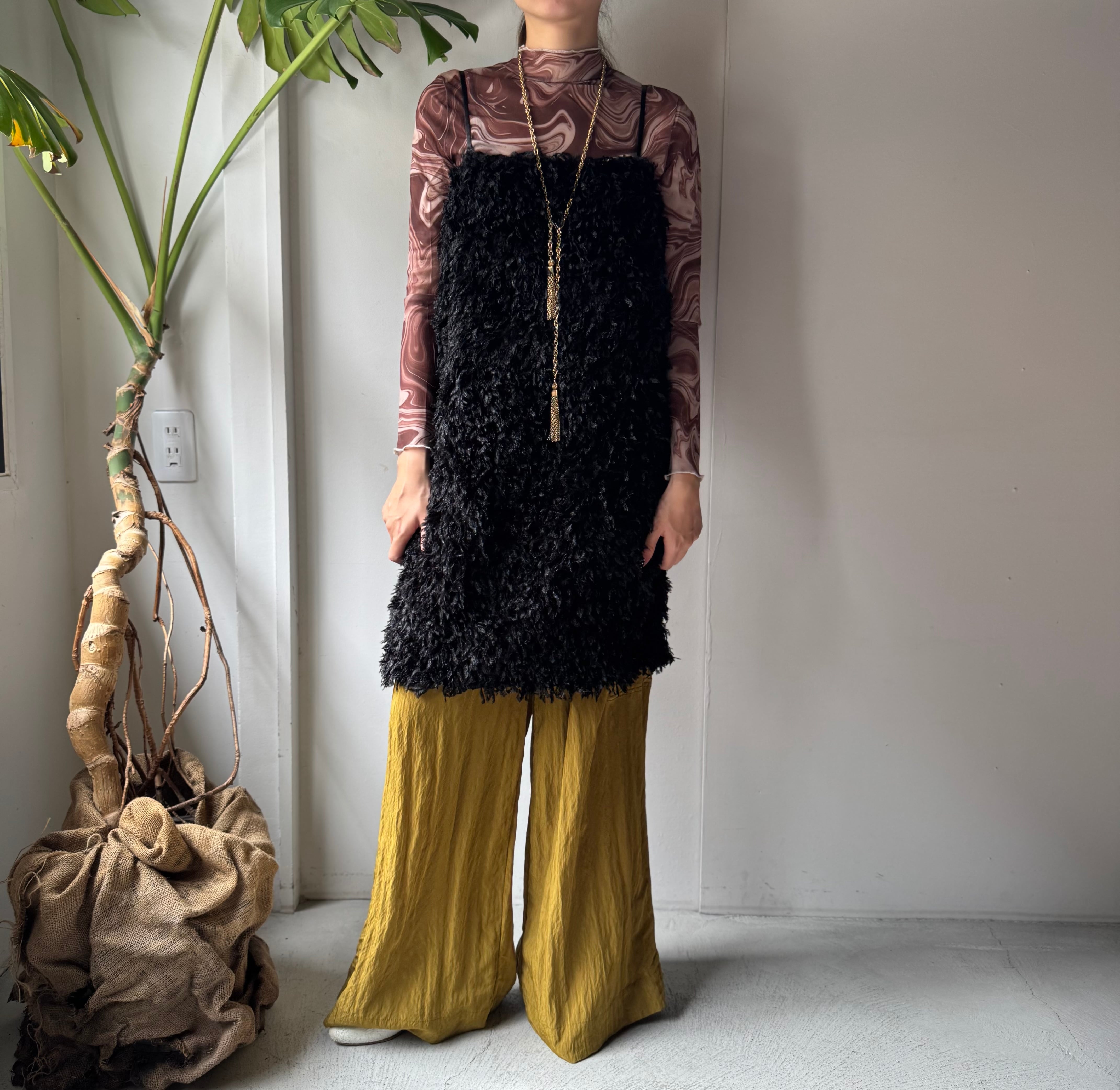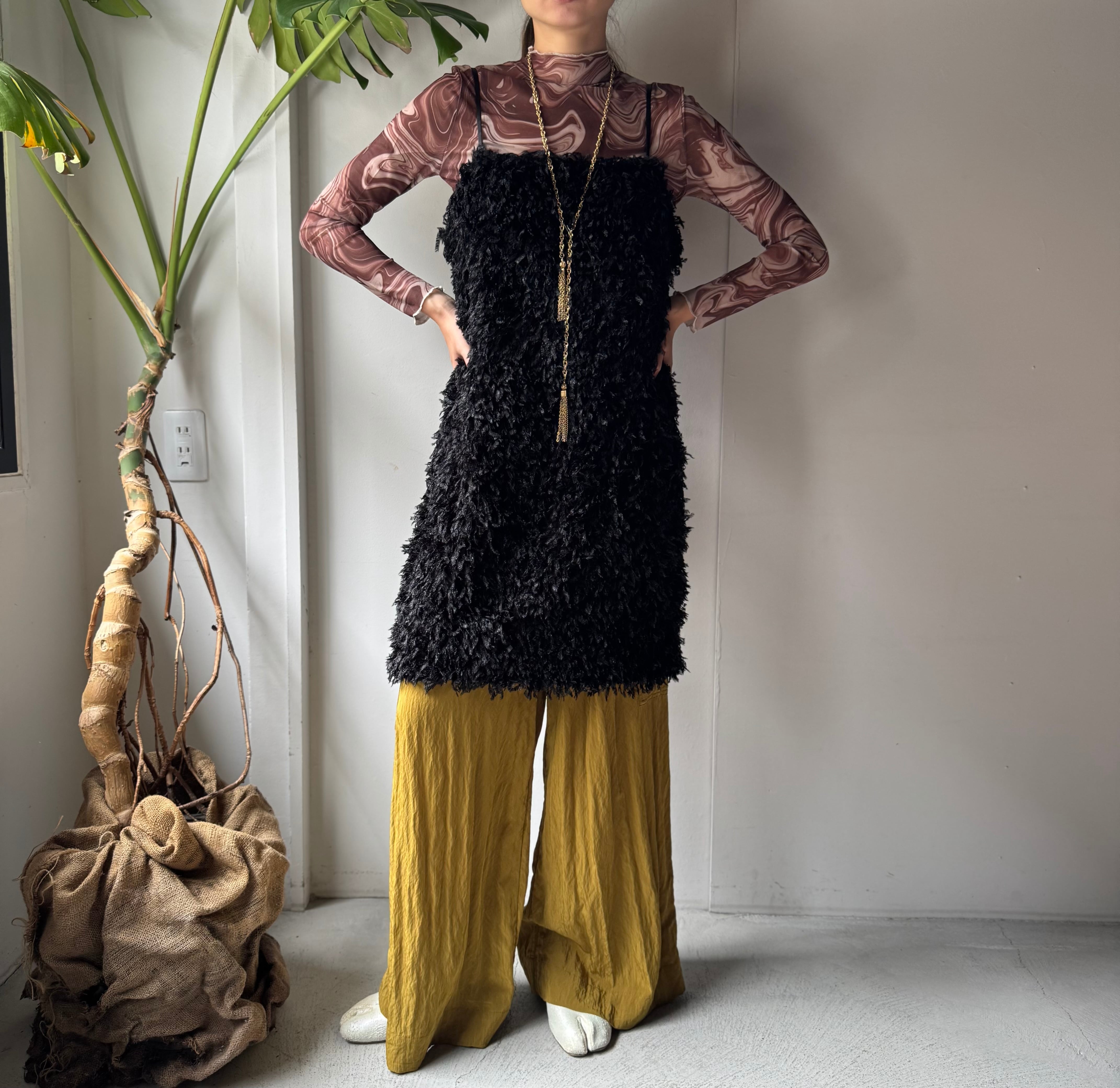 ・贅沢なモケモケフリンジ素材のチュニックワンピース。