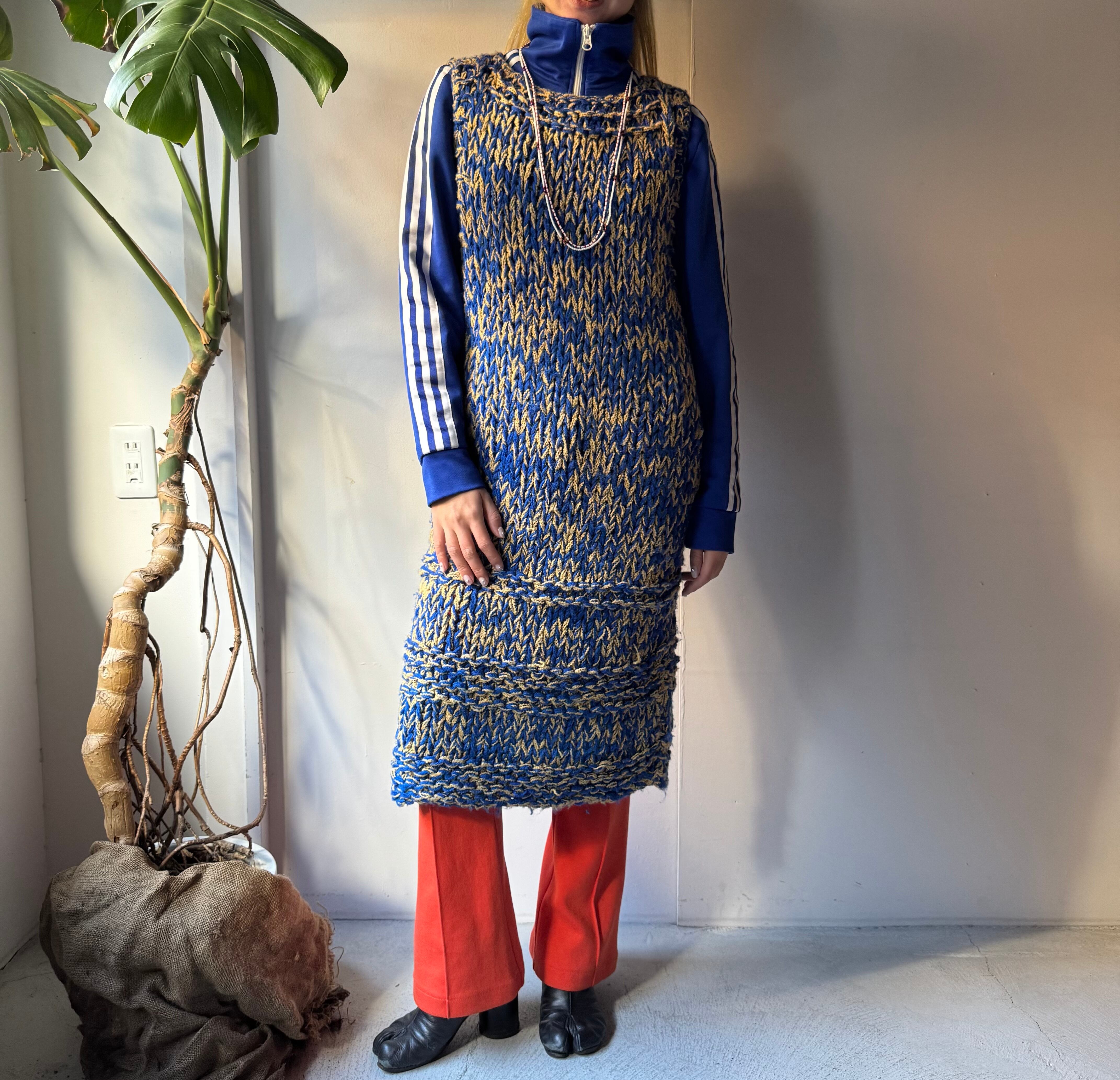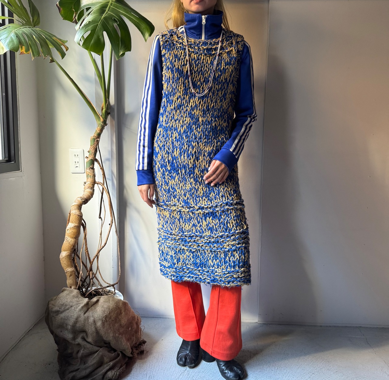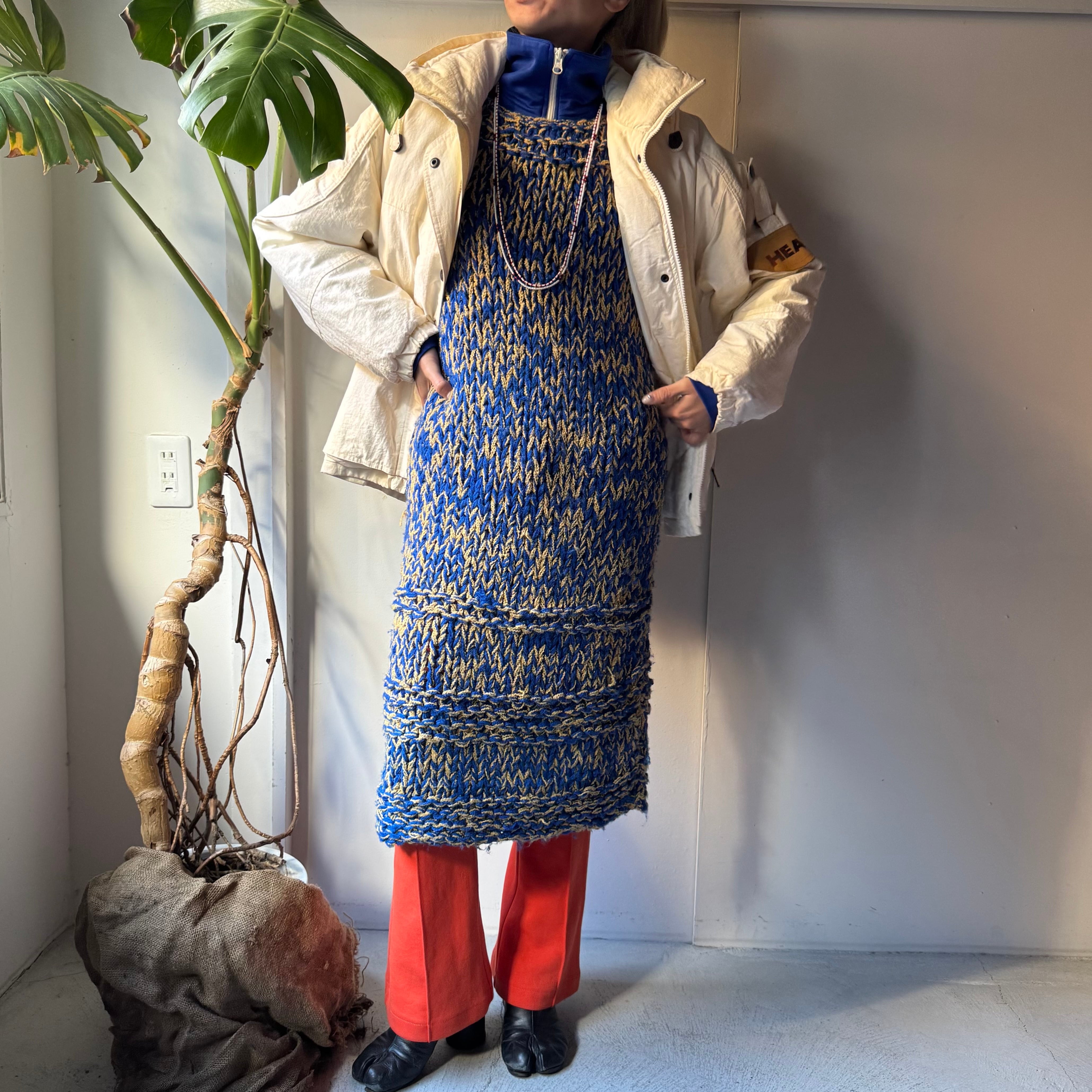 ・良い色の組み合わせ、そしてざっくりと手作業で編まれたローゲージニット、一枚で存在感抜群のスタイリングに昇華してくれます。