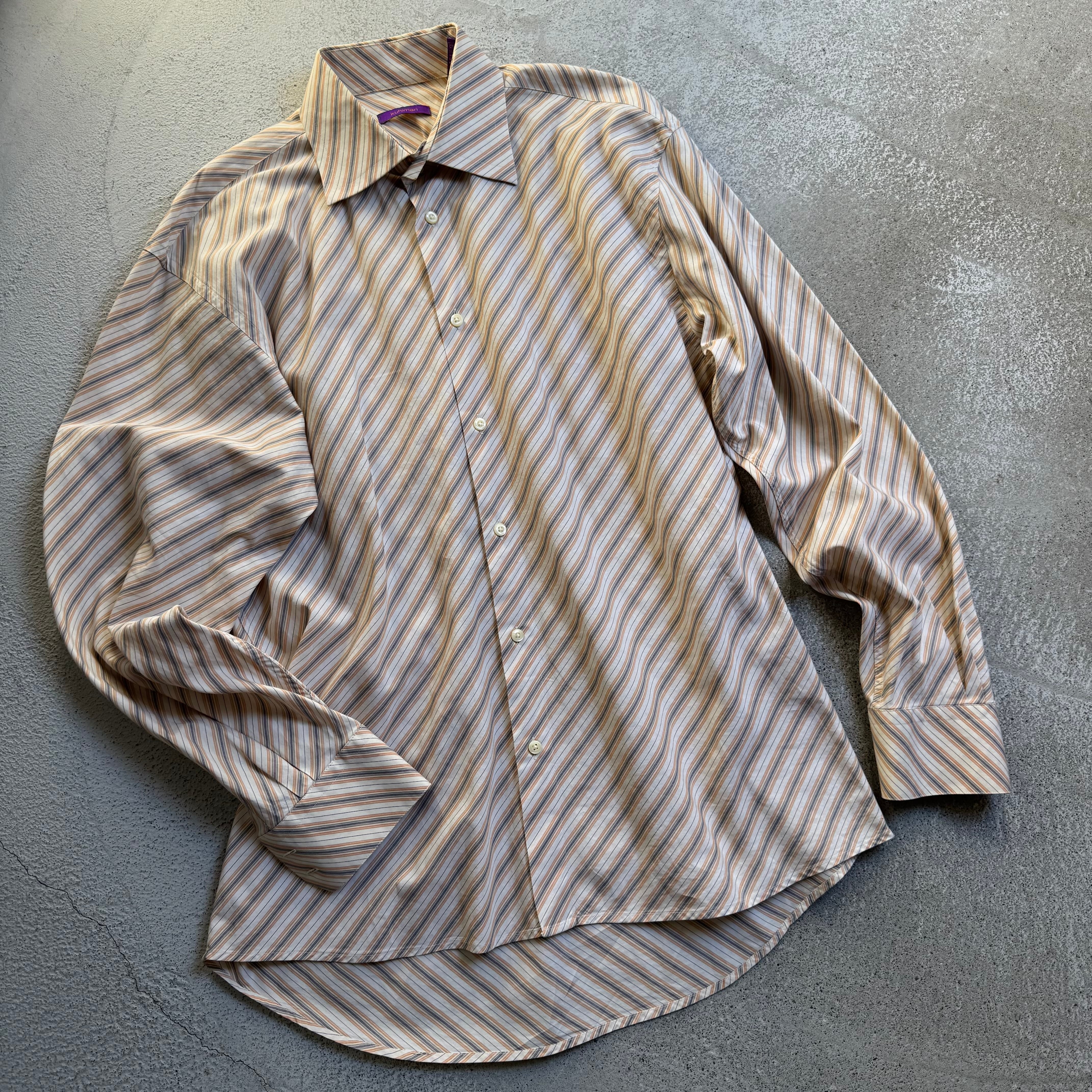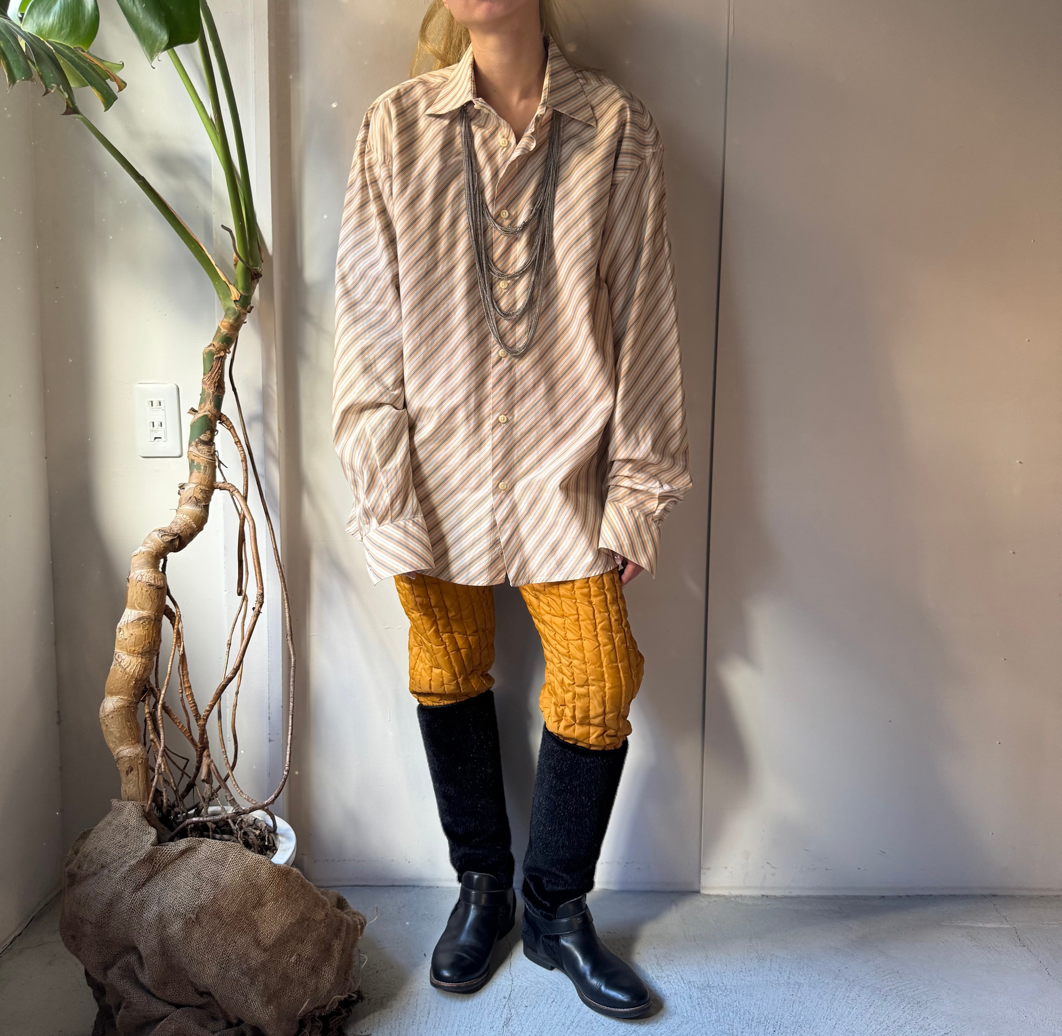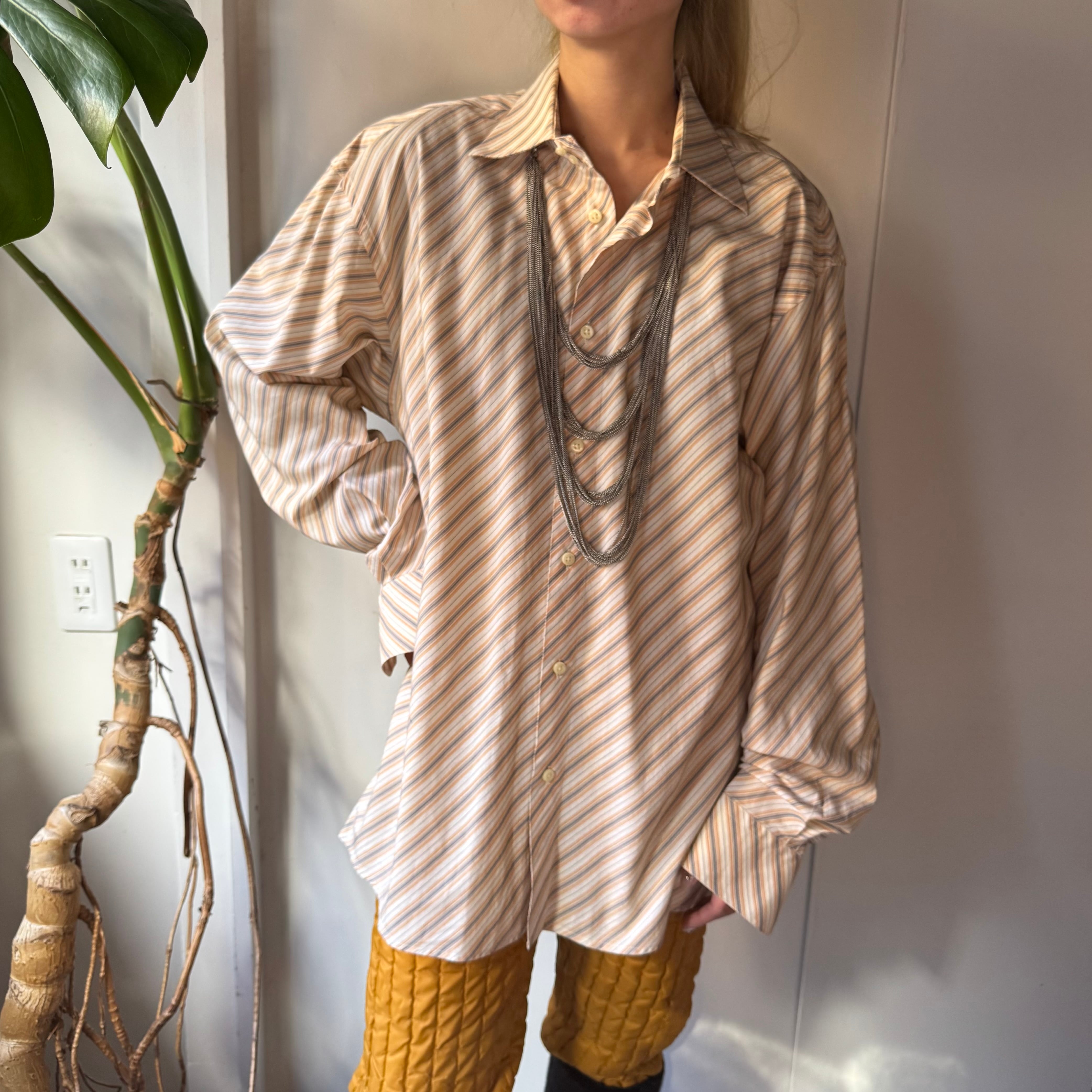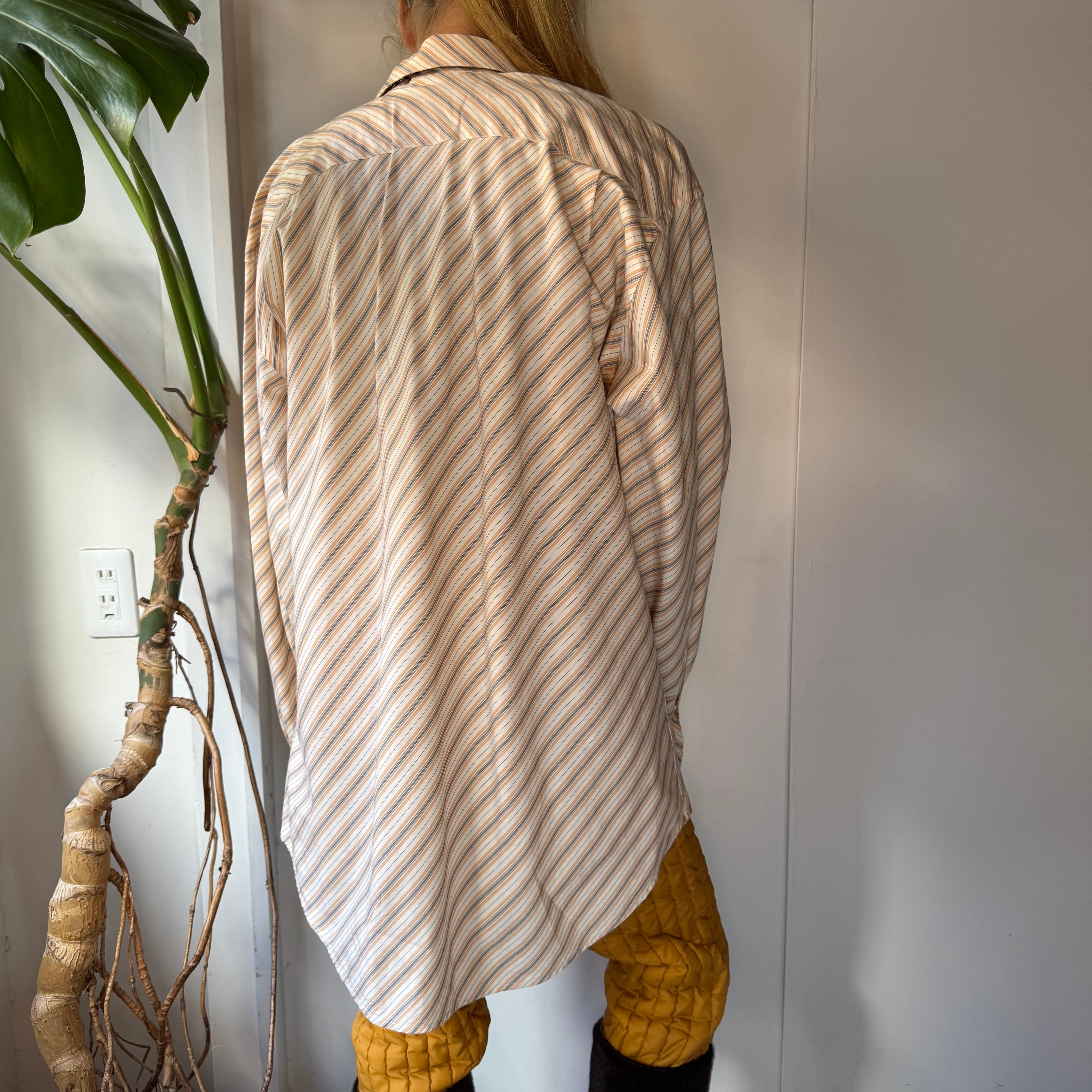 ・斜めにプリントされたストライプ柄が印象的なコットンシャツ。