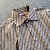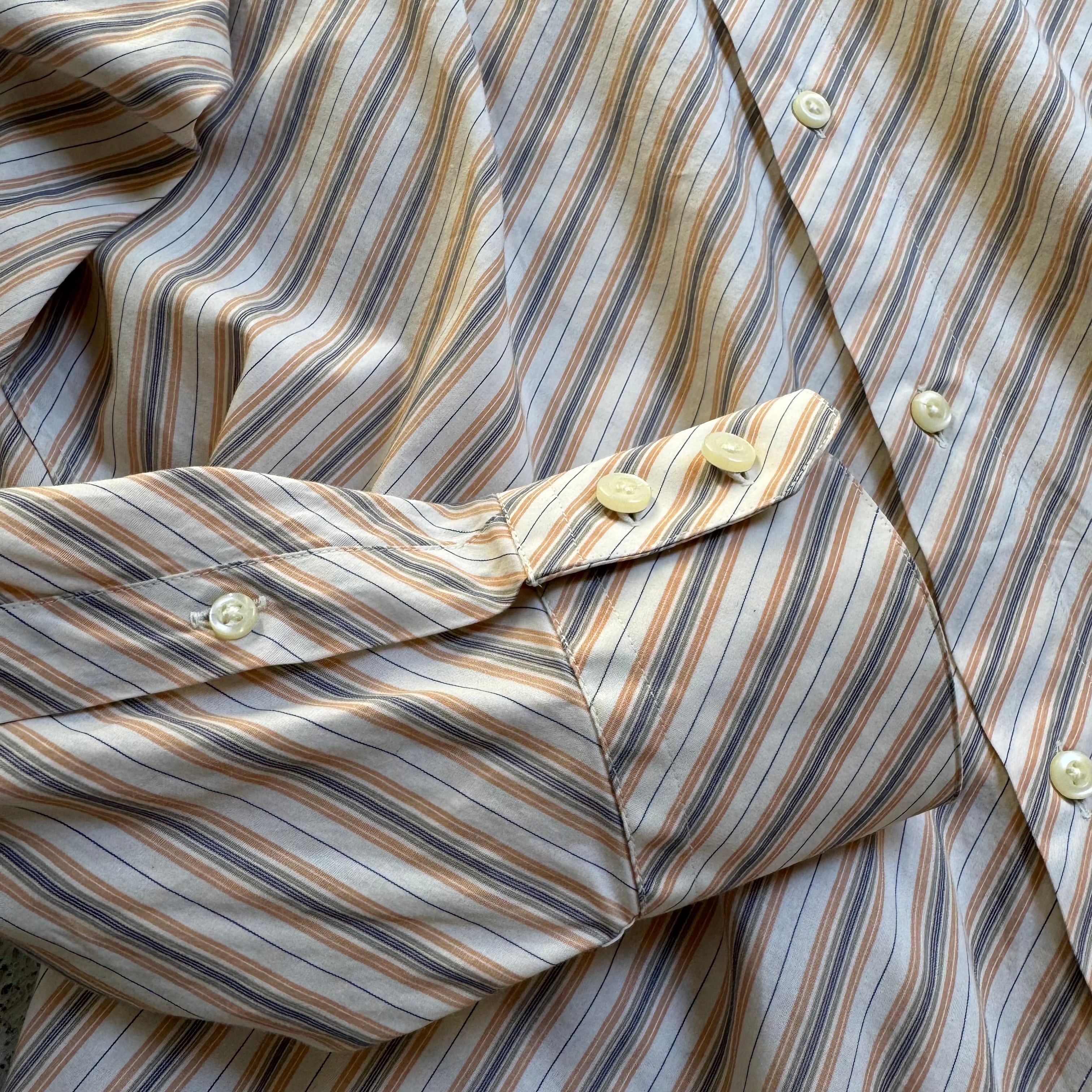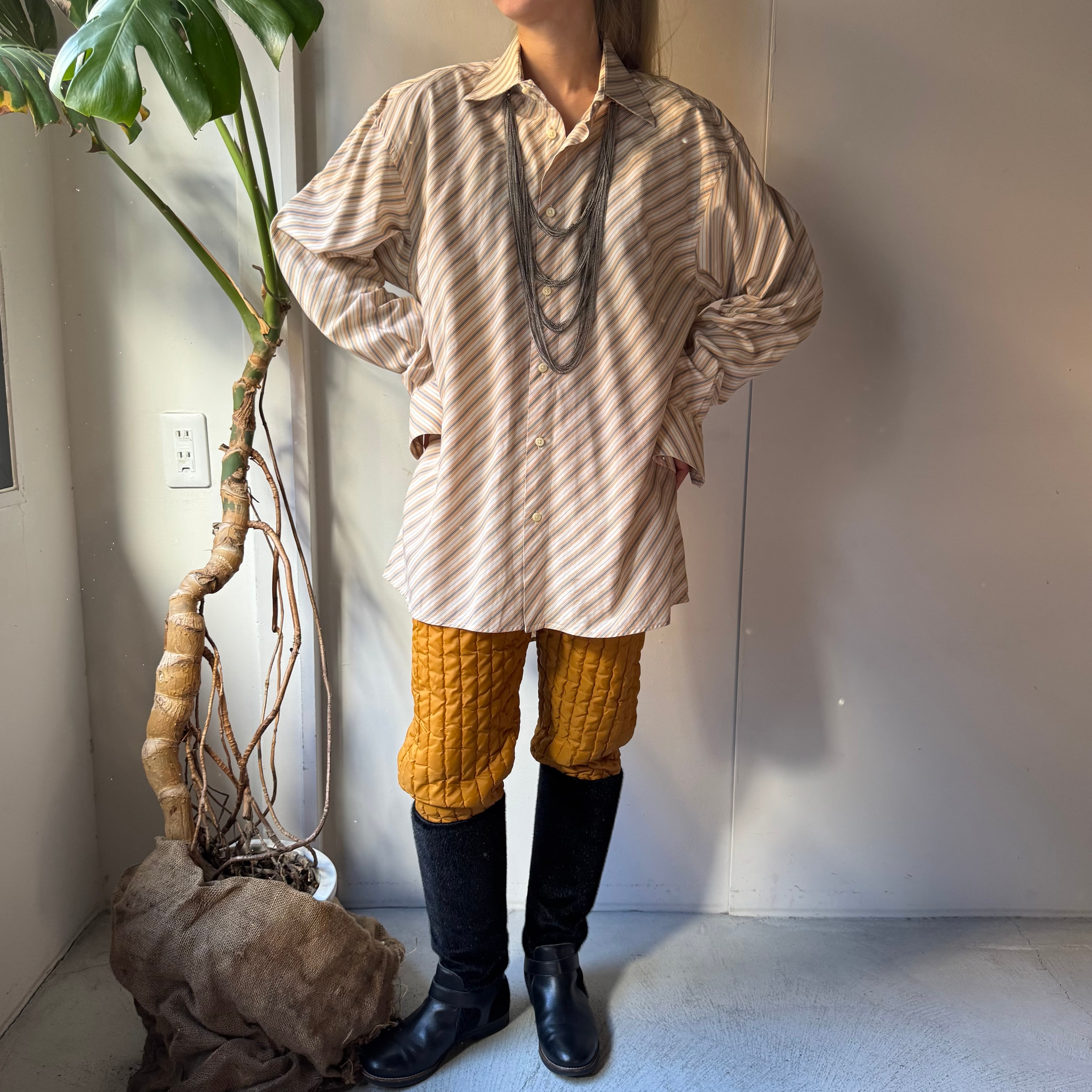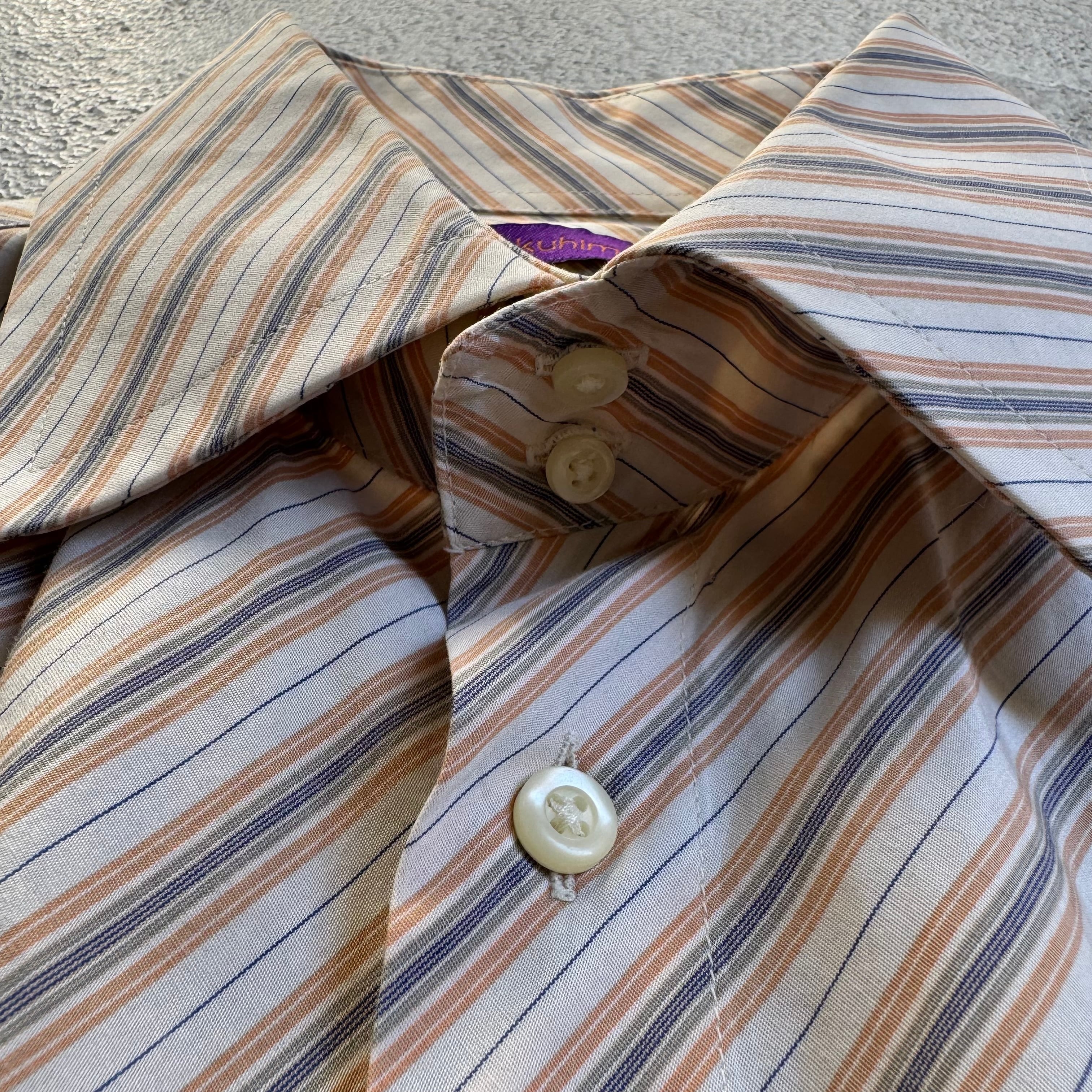 ・斜めにプリントされたストライプ柄が印象的なコットンシャツ。