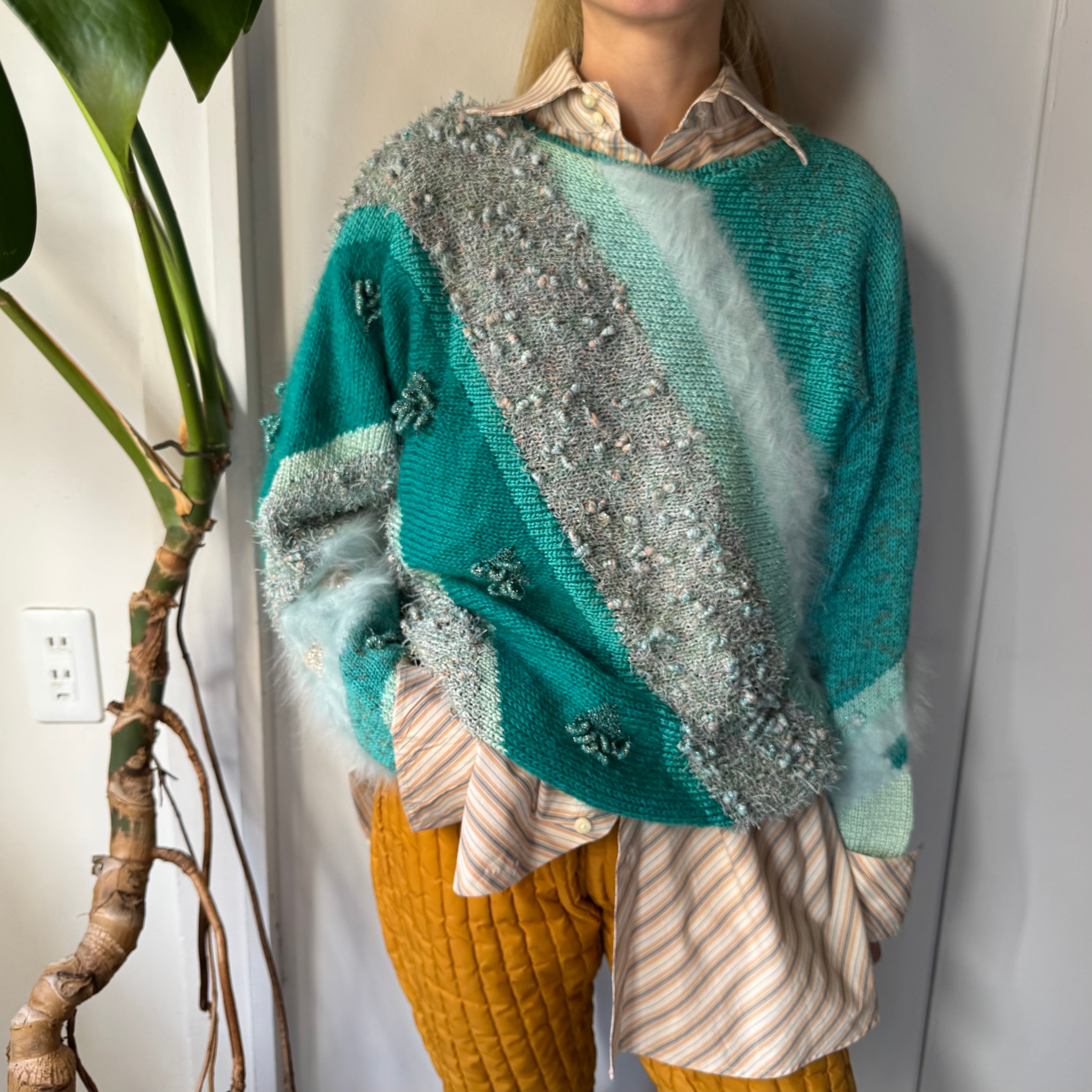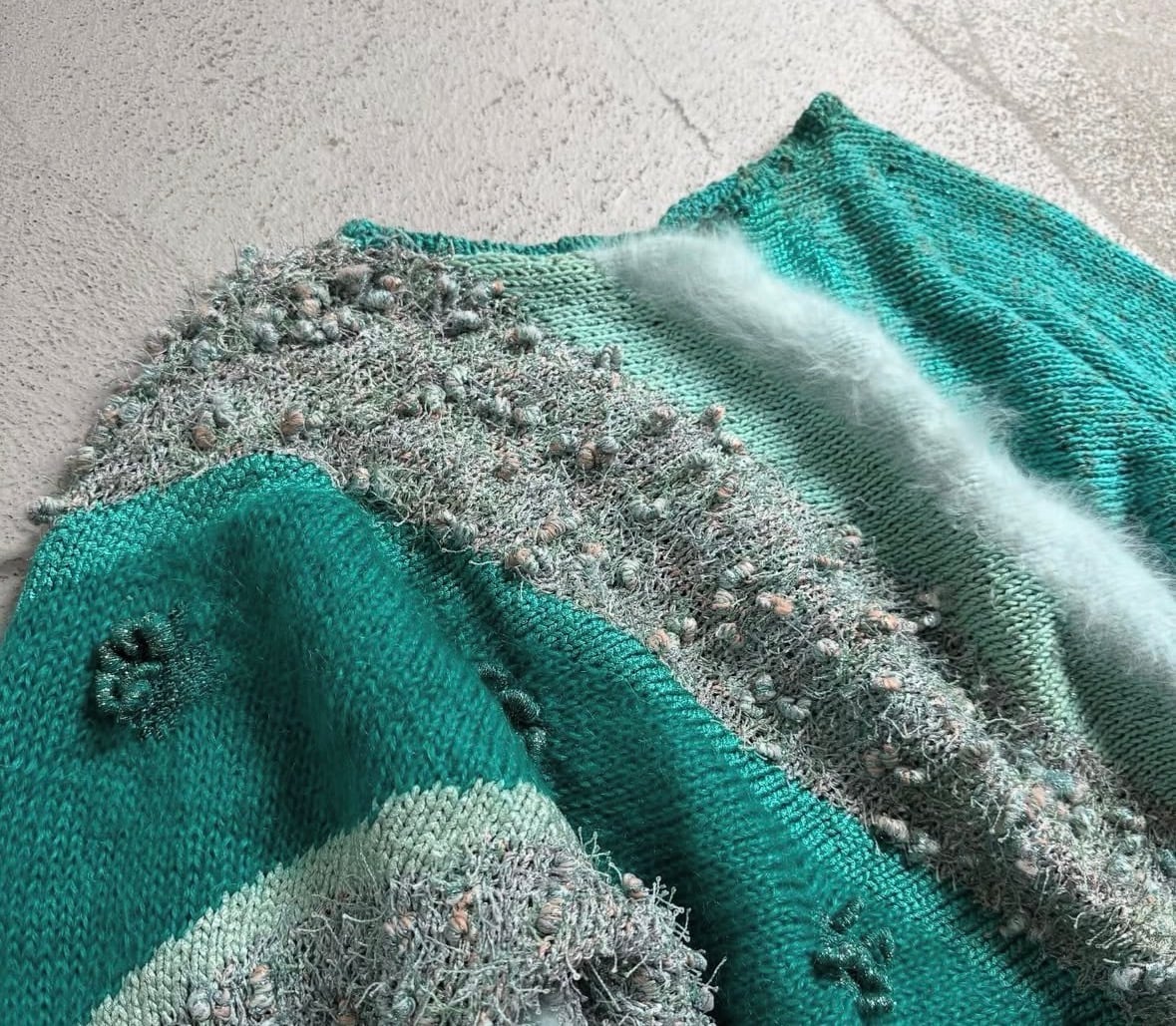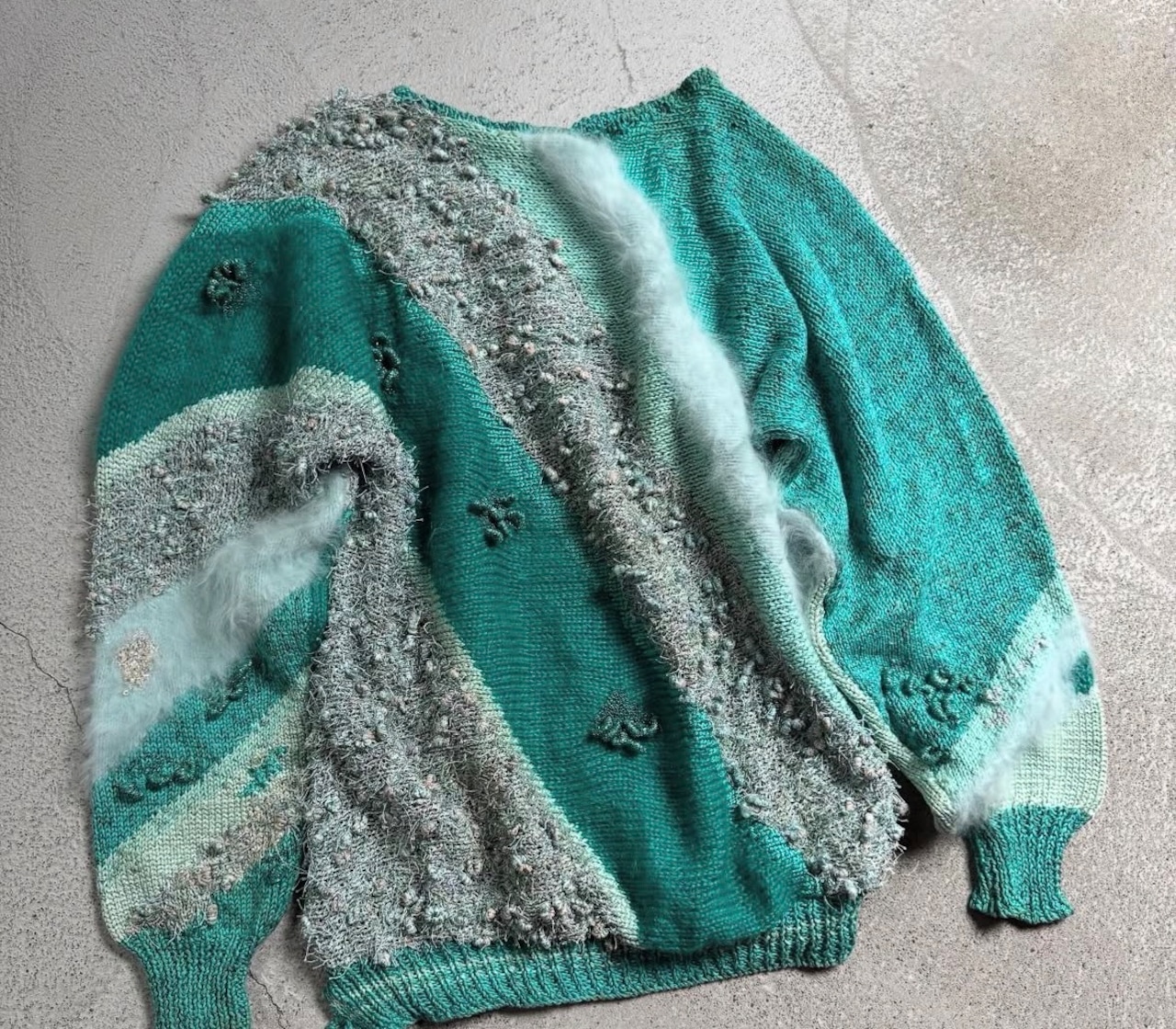 ・モヘア、アンゴラファー、シャギーニットなど、様々な素材が贅沢にミックスされた1980年代のハンドニット。