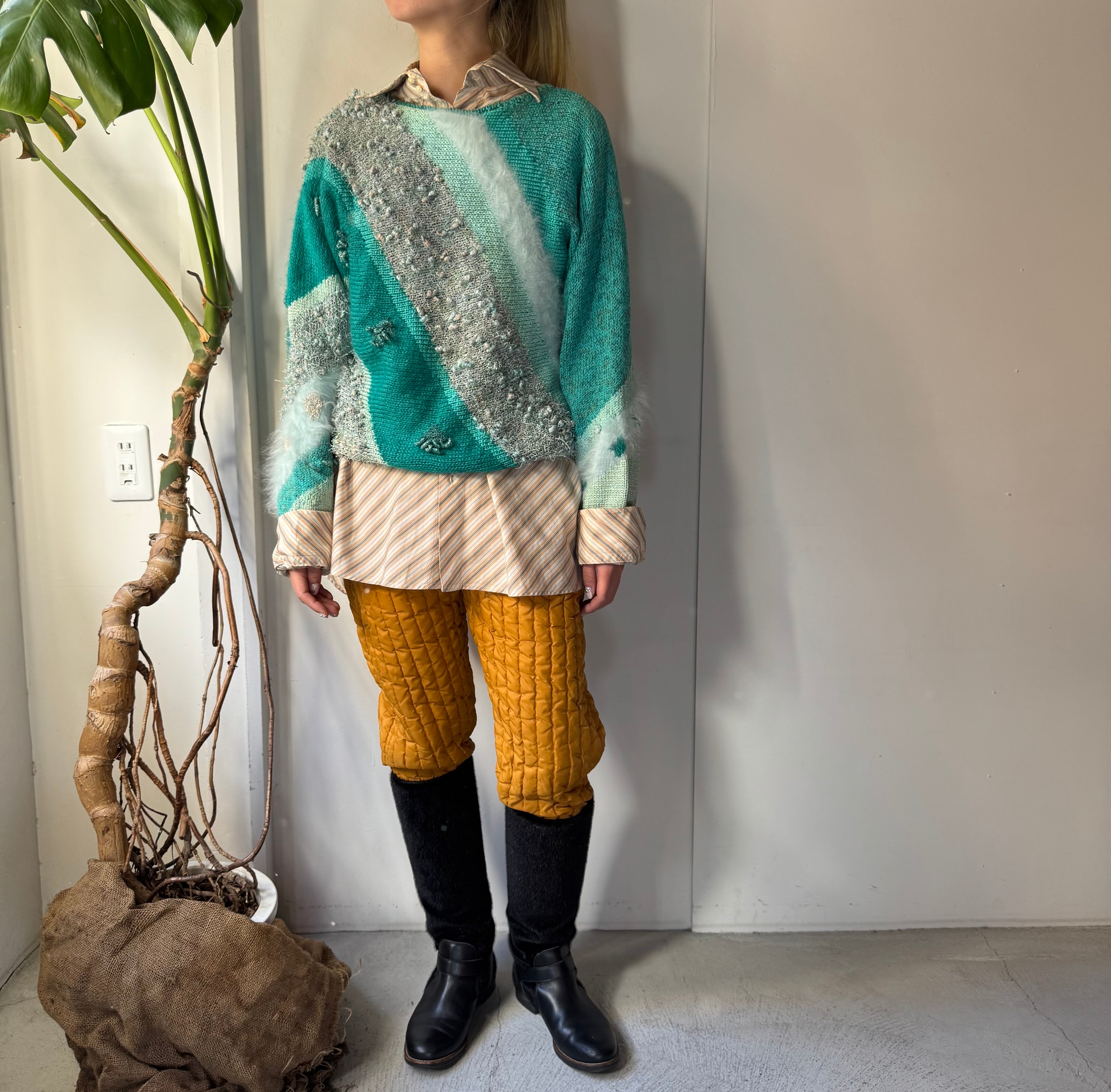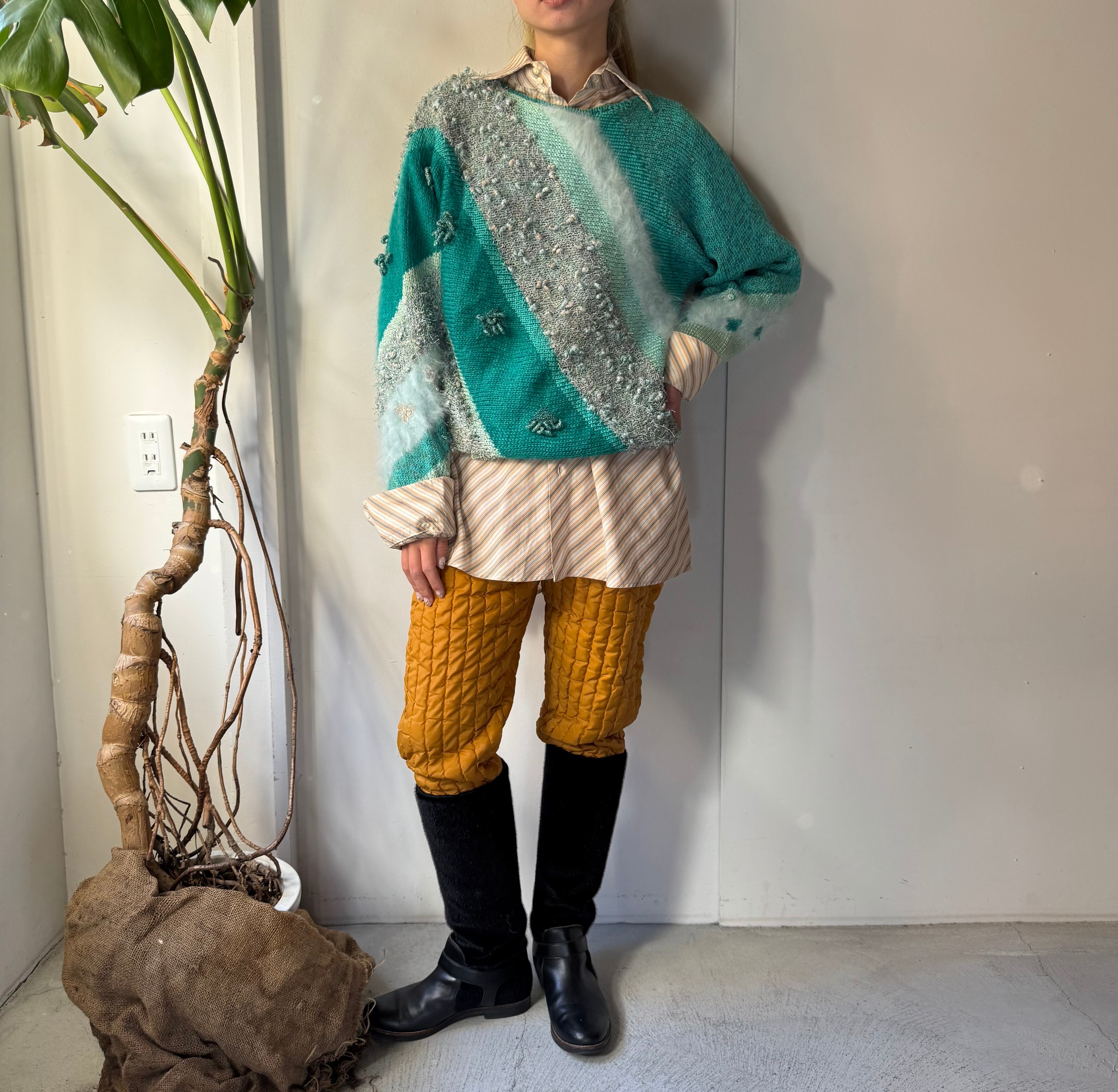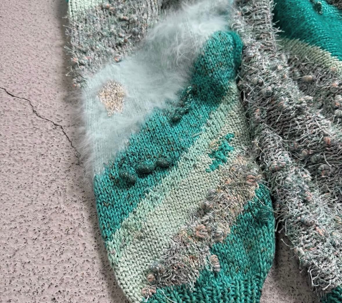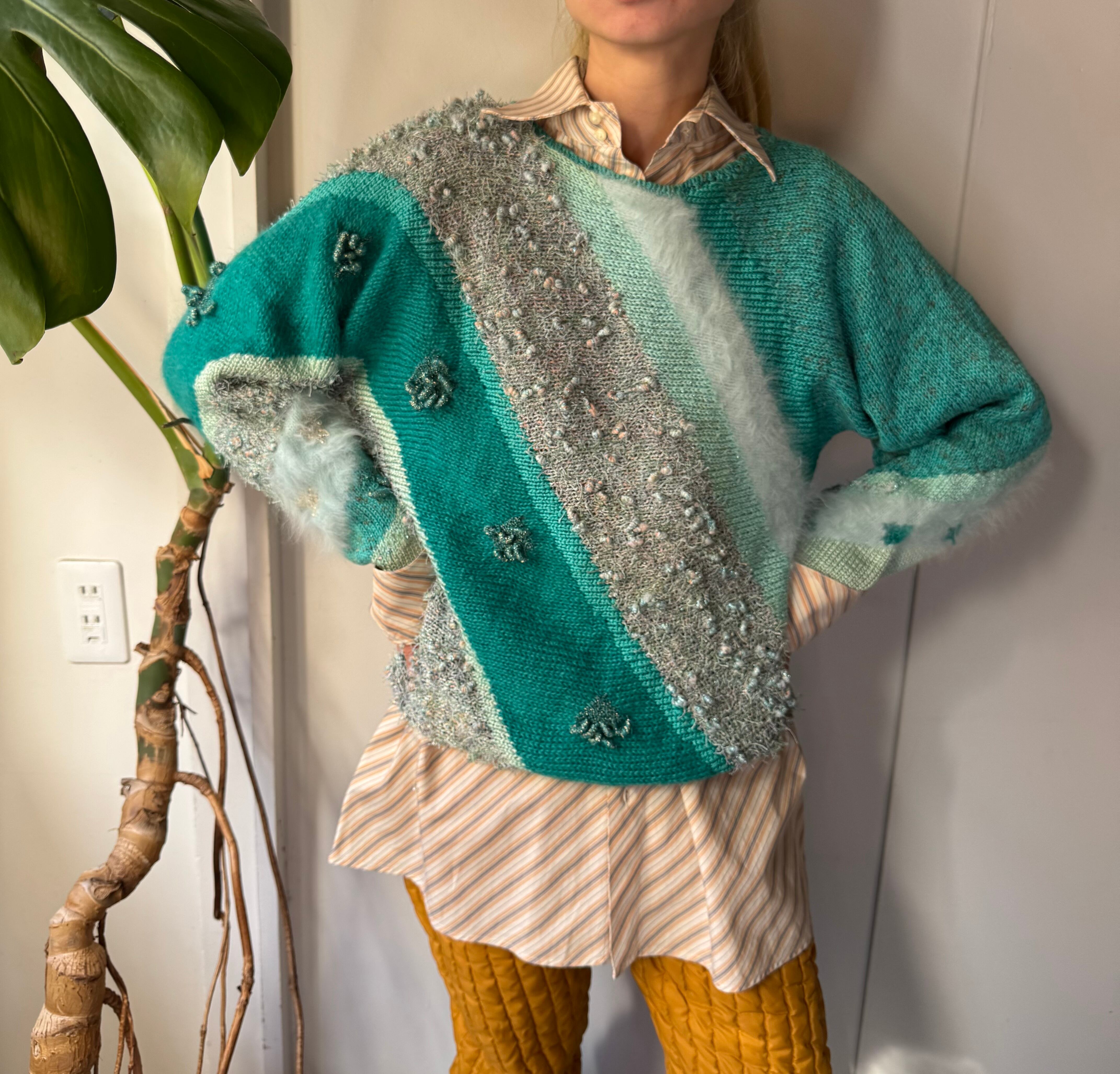 ・モヘア、アンゴラファー、シャギーニットなど、様々な素材が贅沢にミックスされた1980年代のハンドニット。