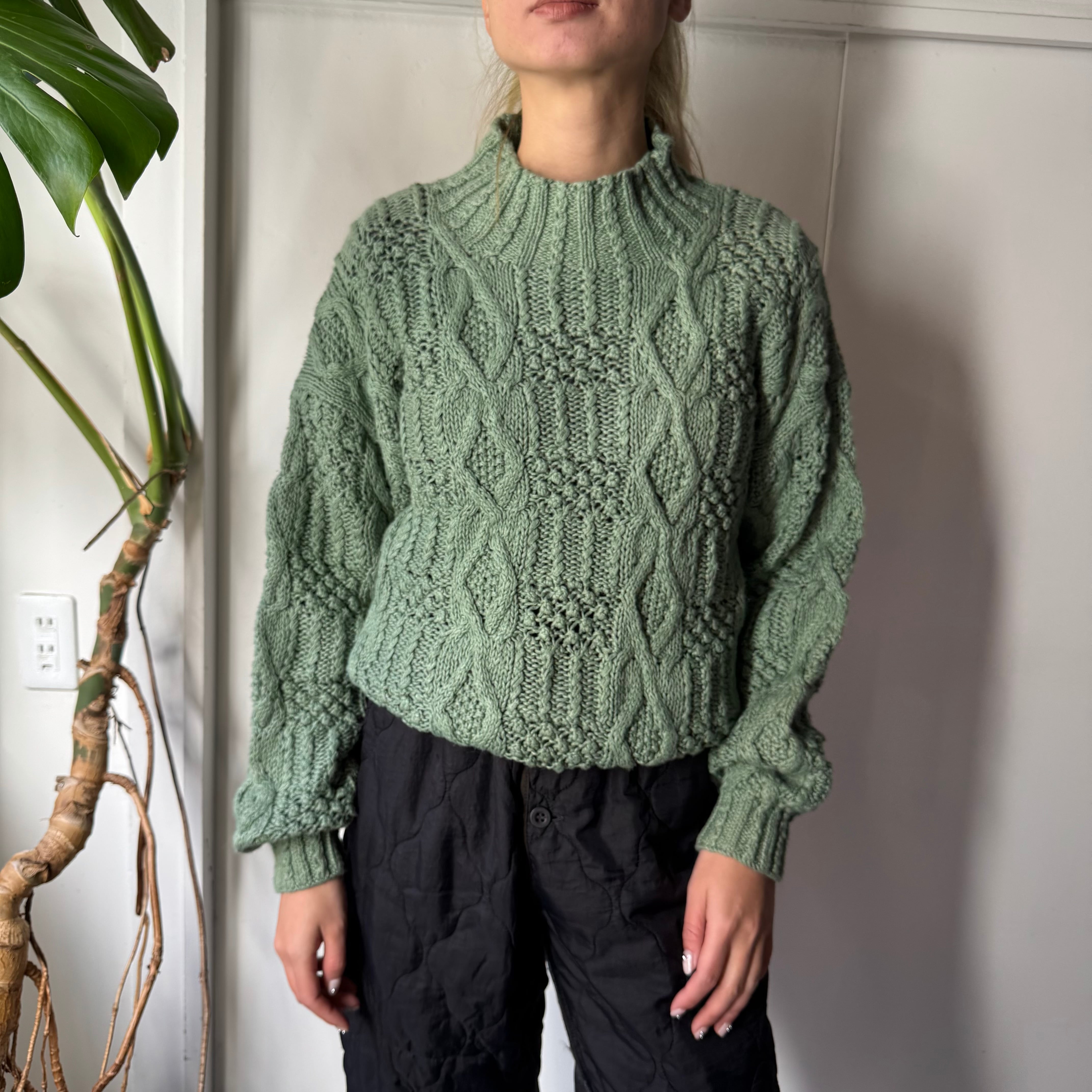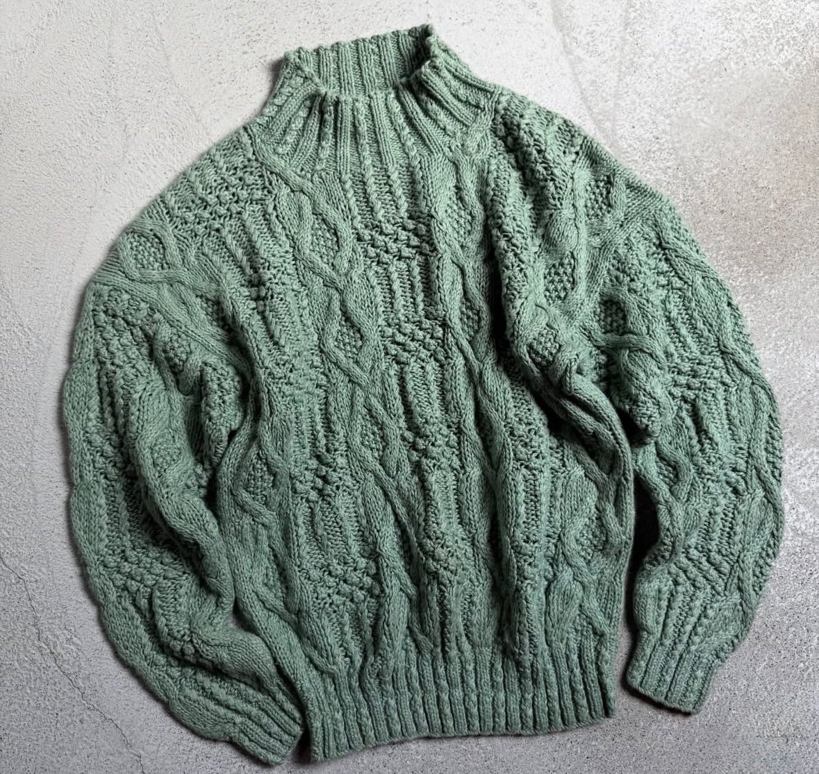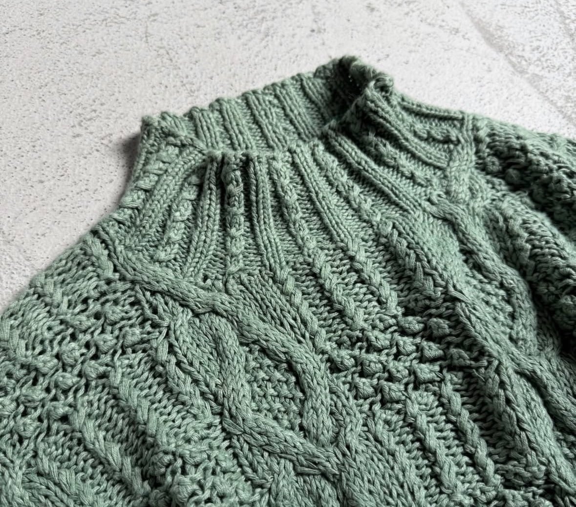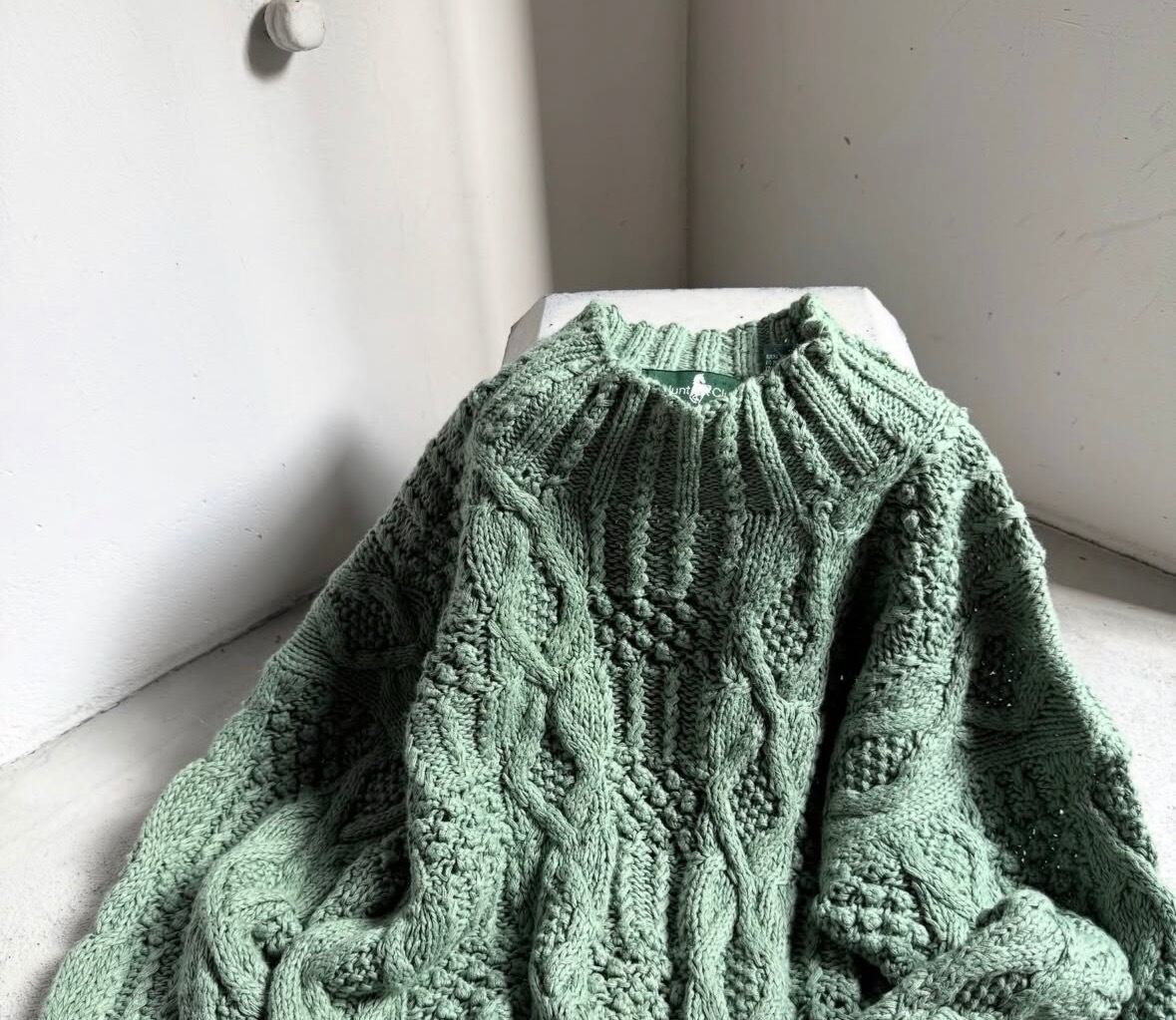 ・ニュアンスカラーが可愛いミントグリーンのフィッシャーマン柄ニット。