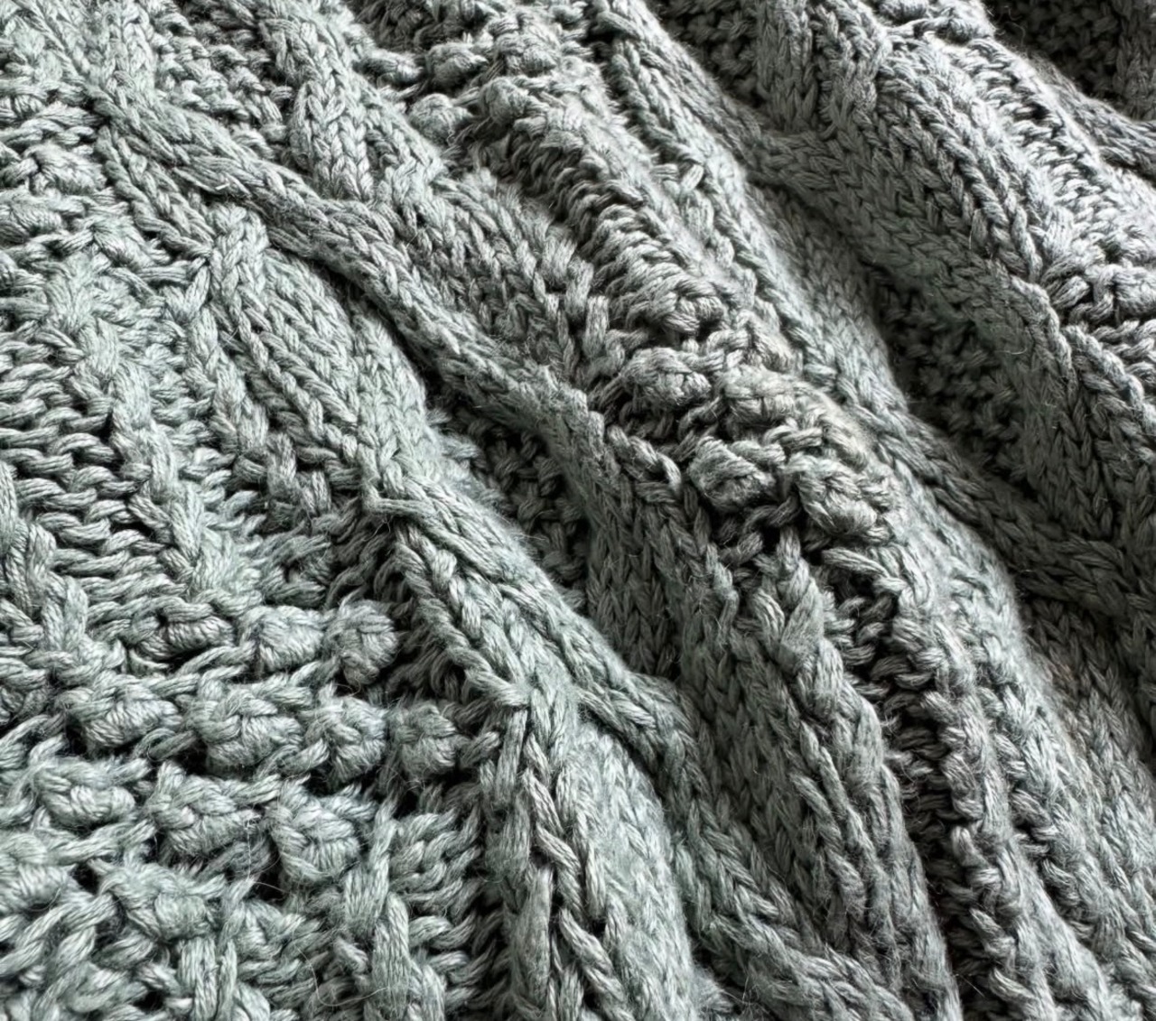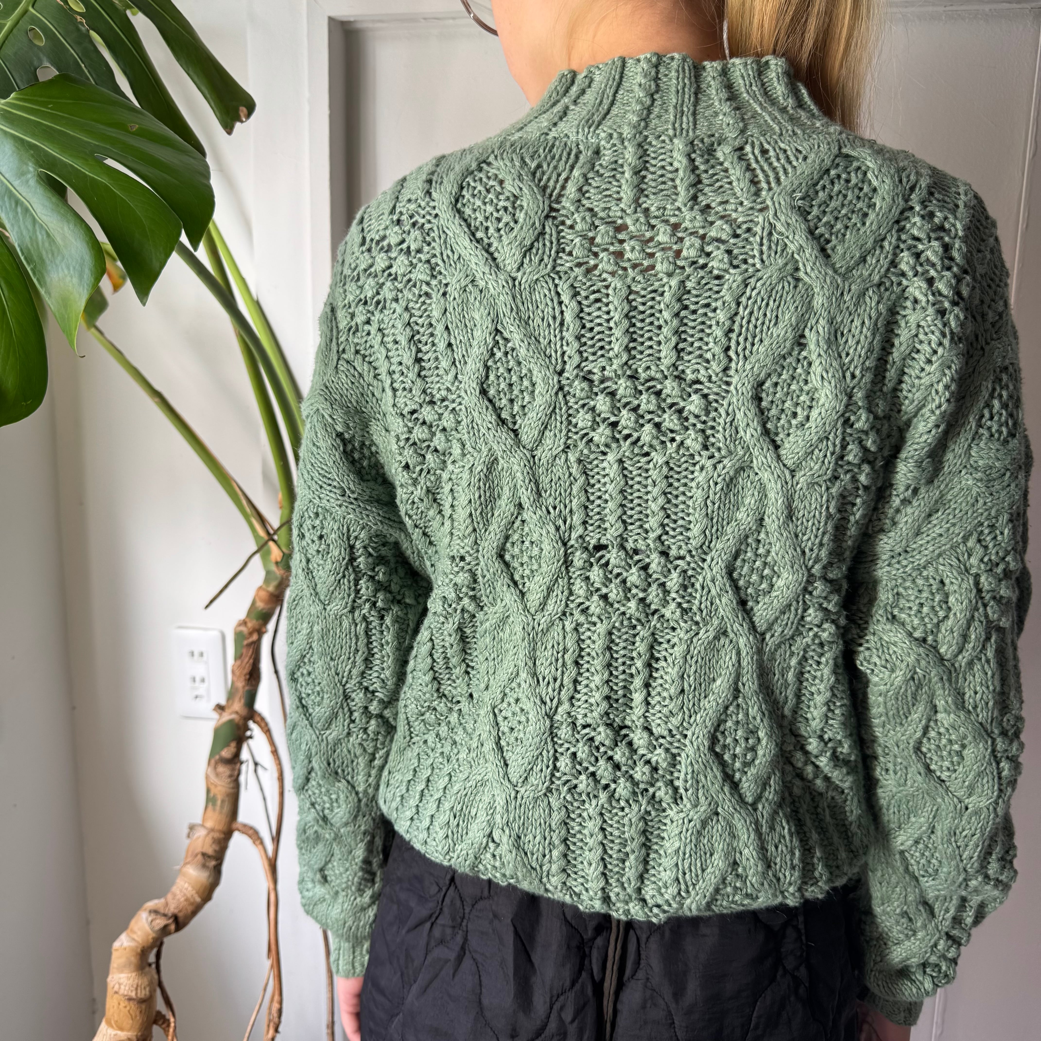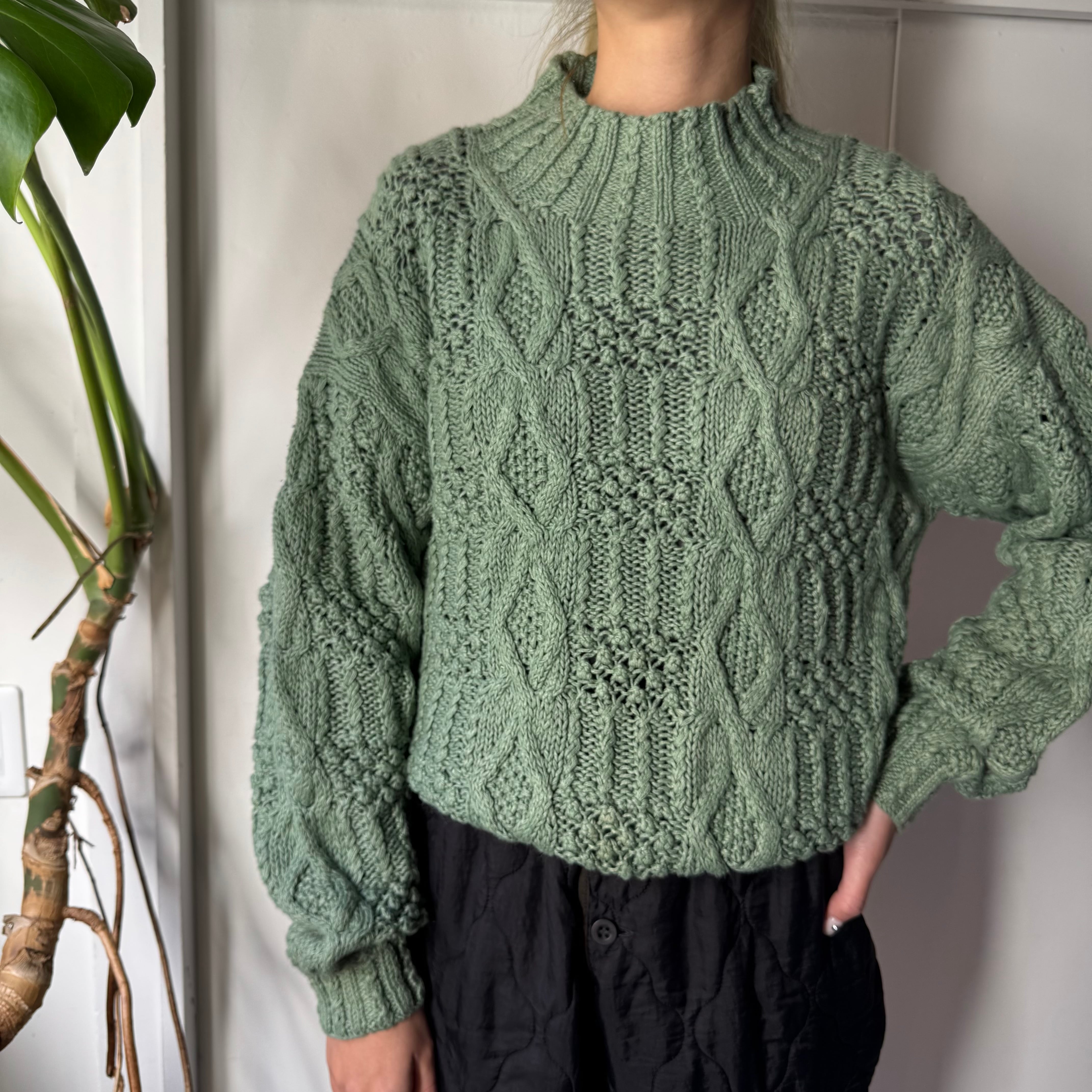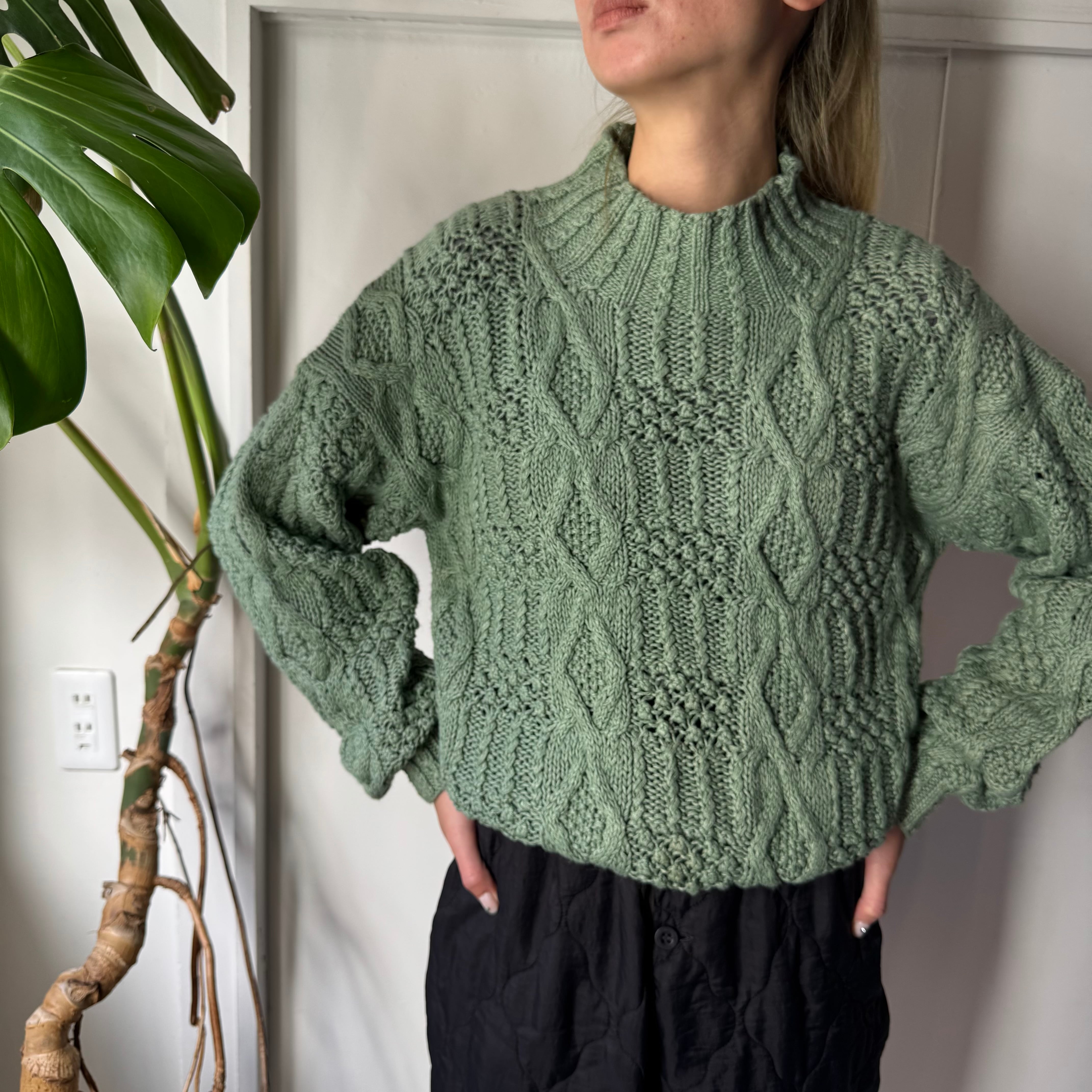 ・ニュアンスカラーが可愛いミントグリーンのフィッシャーマン柄ニット。