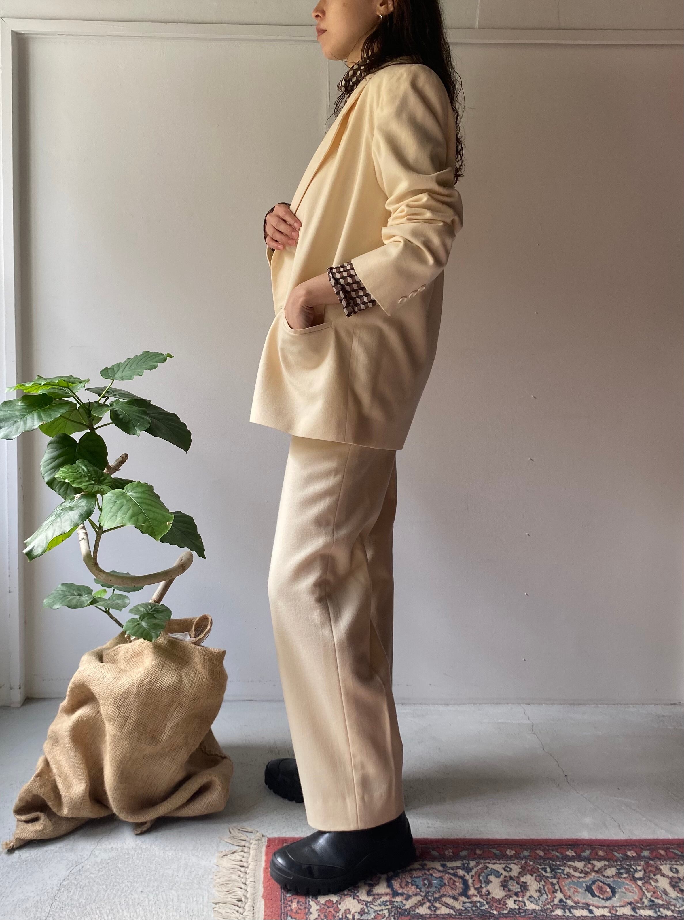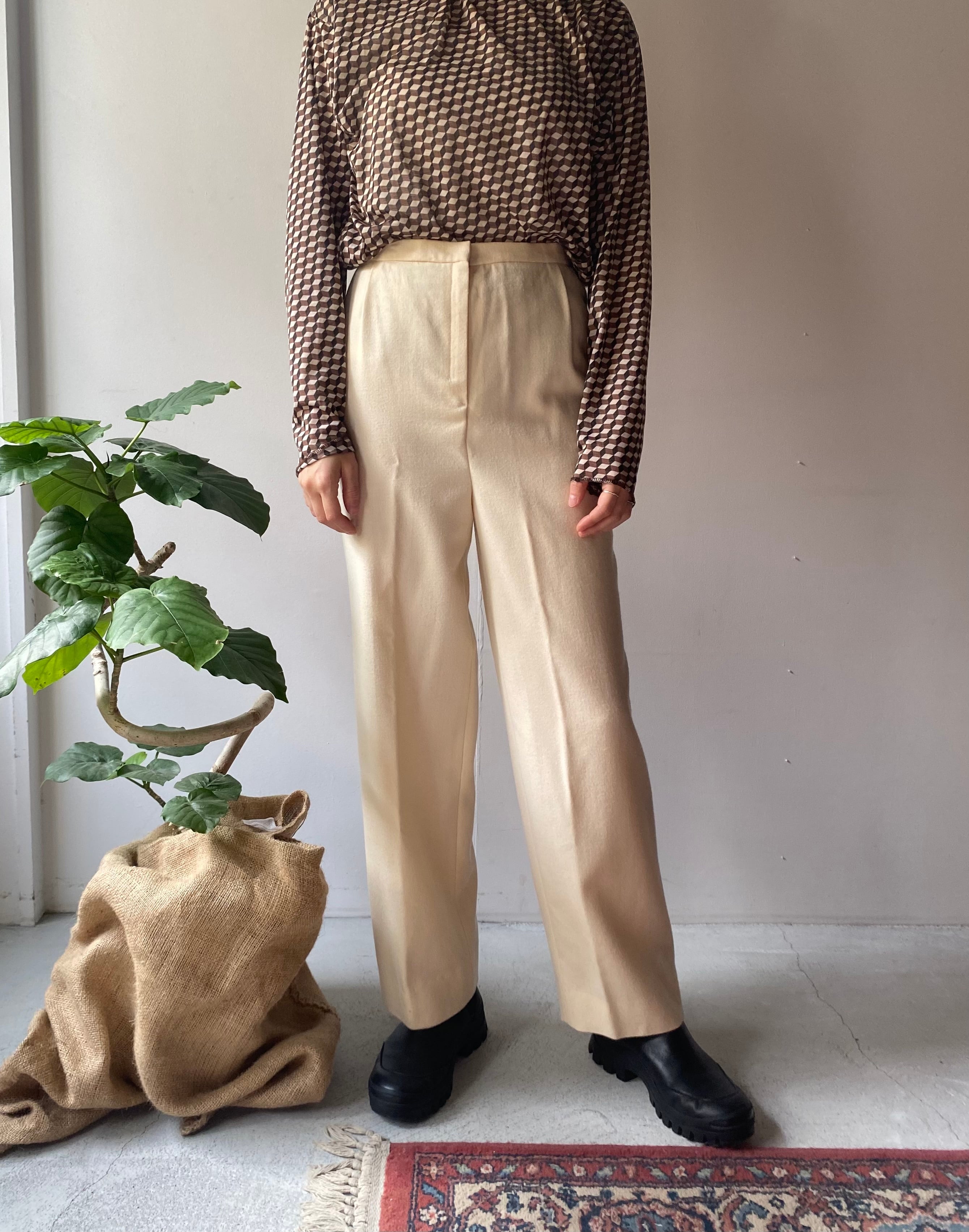 ・シルエットの美しさがモノを言うテーパードパンツですが、こちらは素材のオチ感との相性含め、パーフェクトなシルエットです。