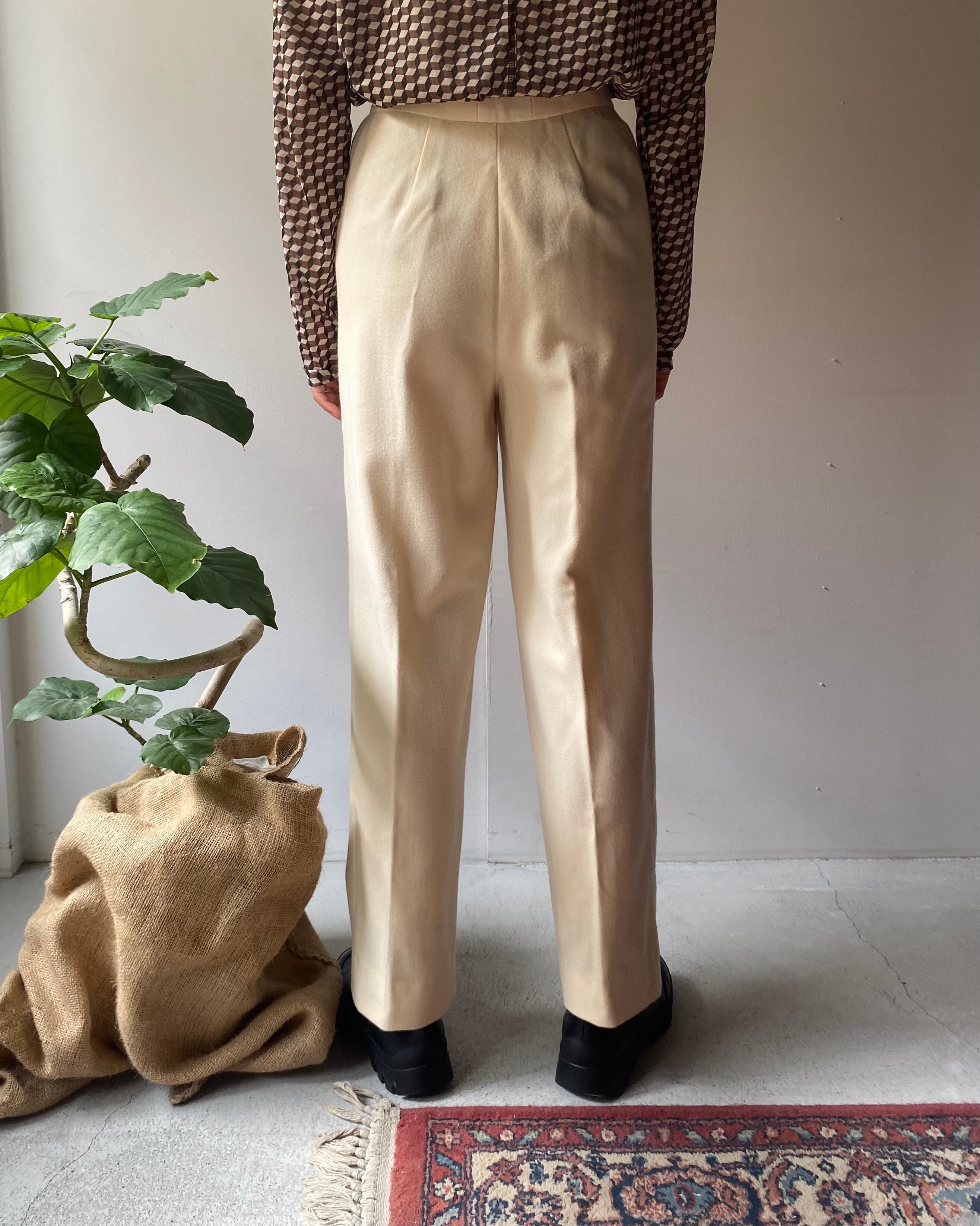 平置き : ウェスト33cm、ヒップ42cm、股上33cm、股下67.5cm、総丈95.5cm、わたり28cm、裾幅20.5cm