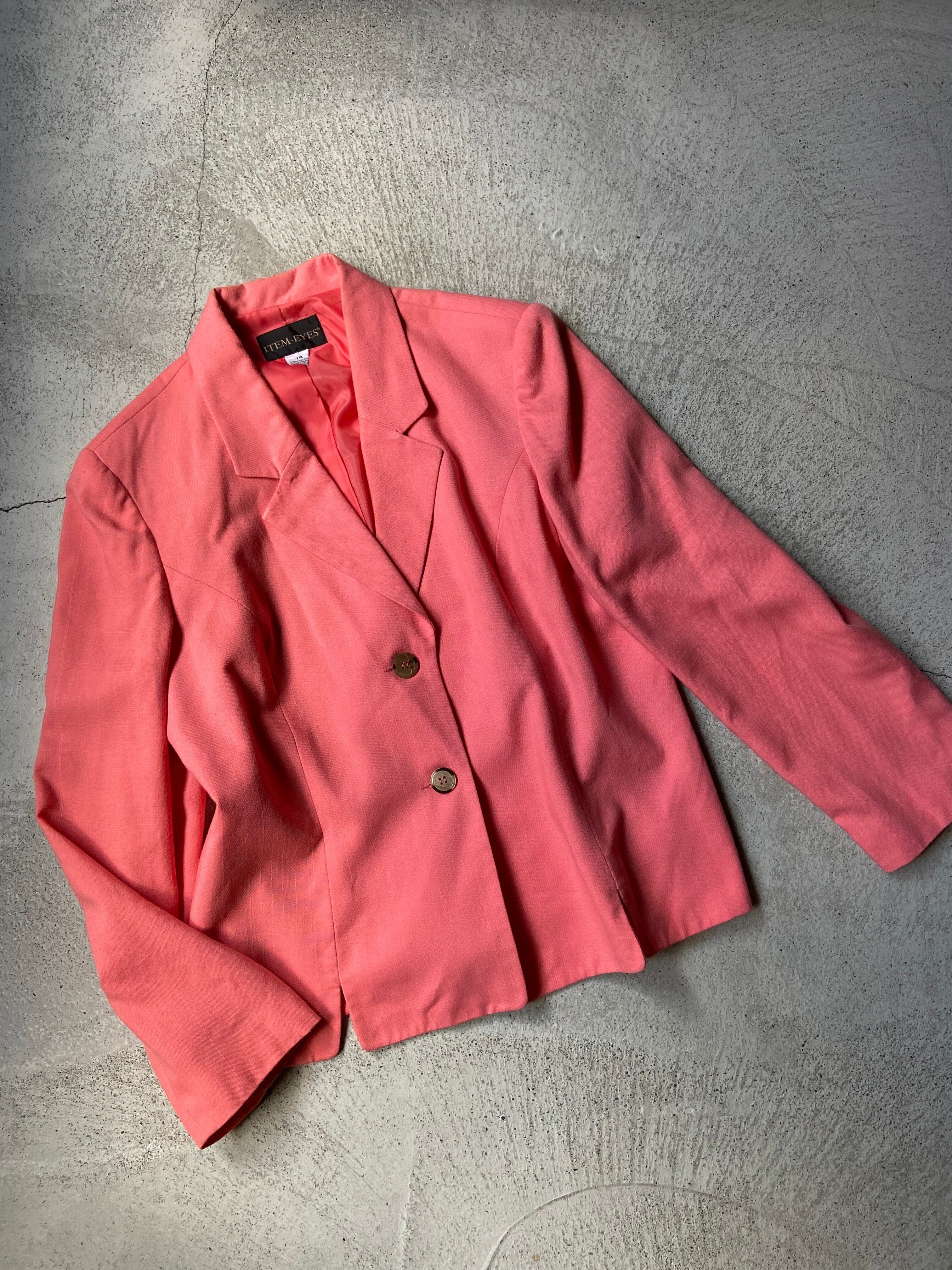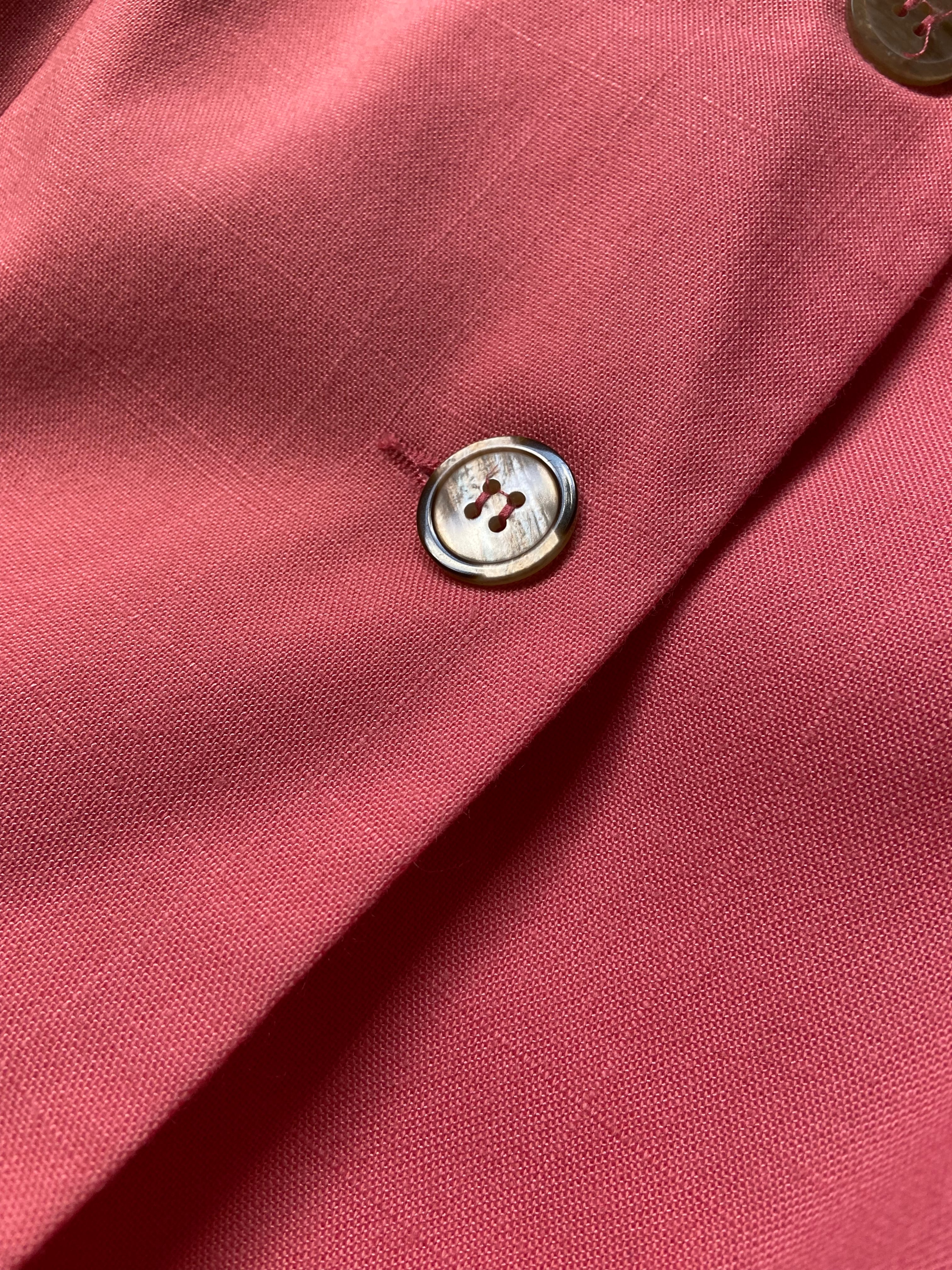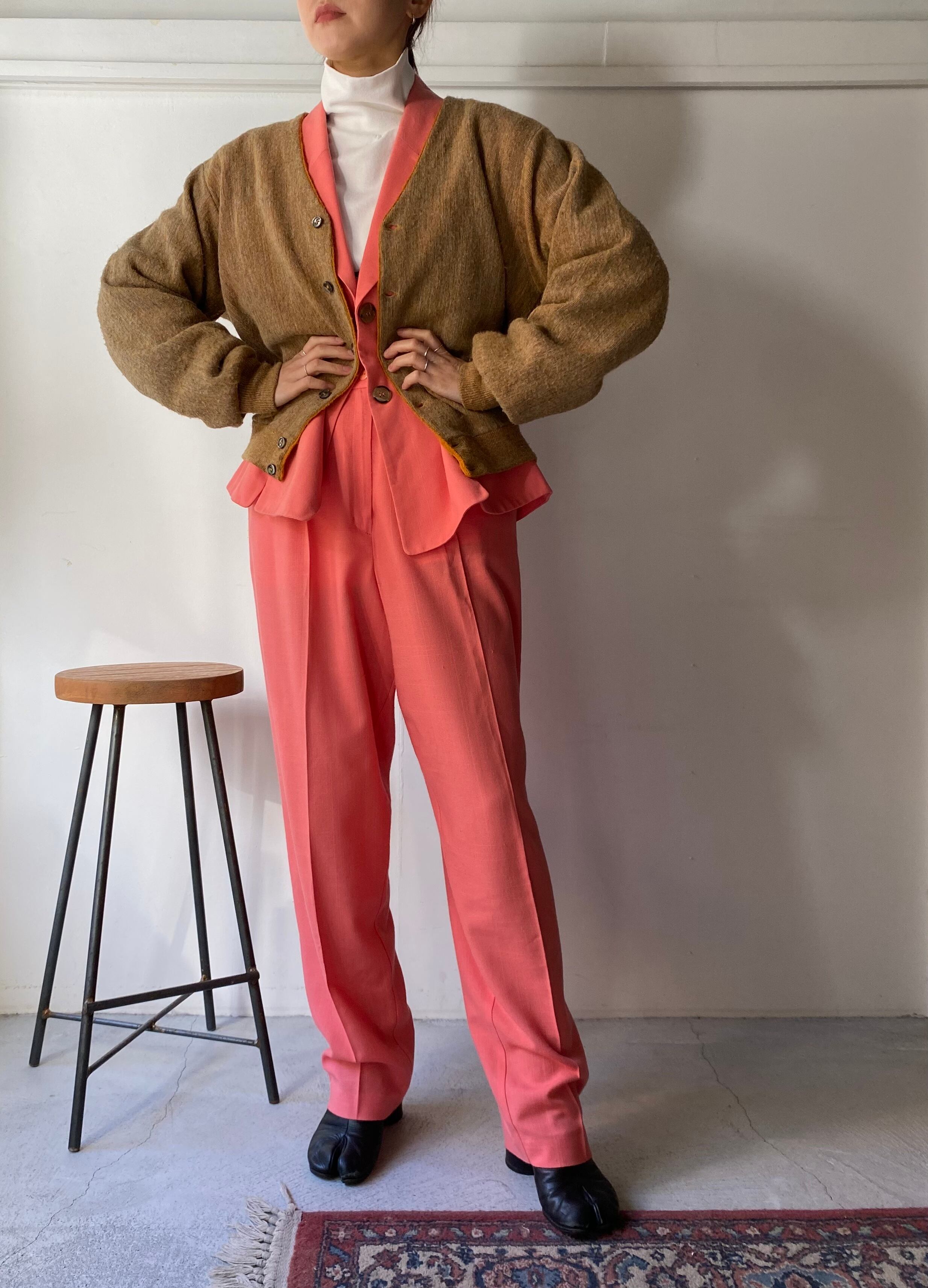 ・上品で落ち着いたカラーリングのピンクが上品なセットアップスーツ。