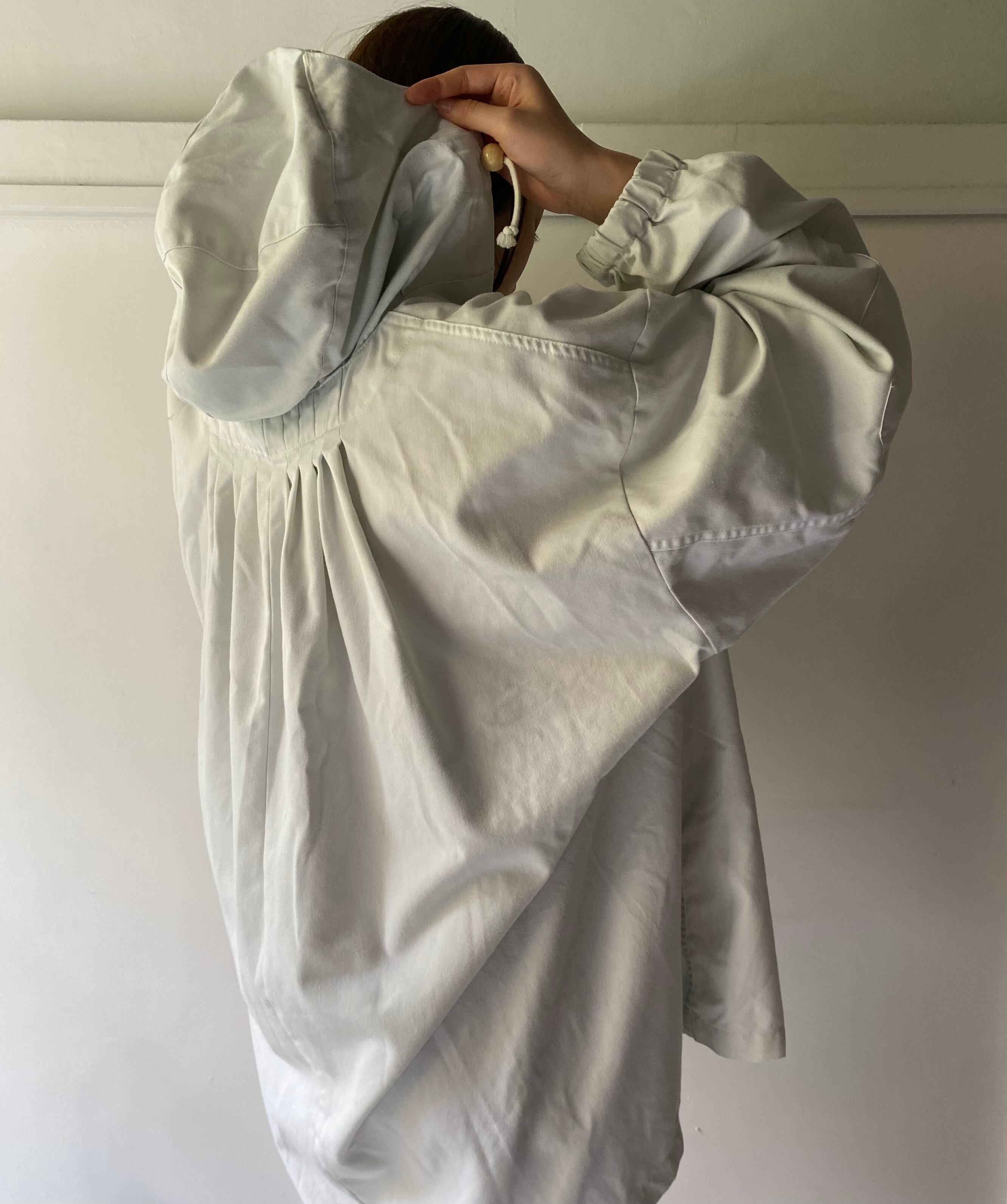 たっぷりととられたタックによって生み出されるドレープが非常に綺麗で、ミリタリーとは思えないデザイン性の高さです。