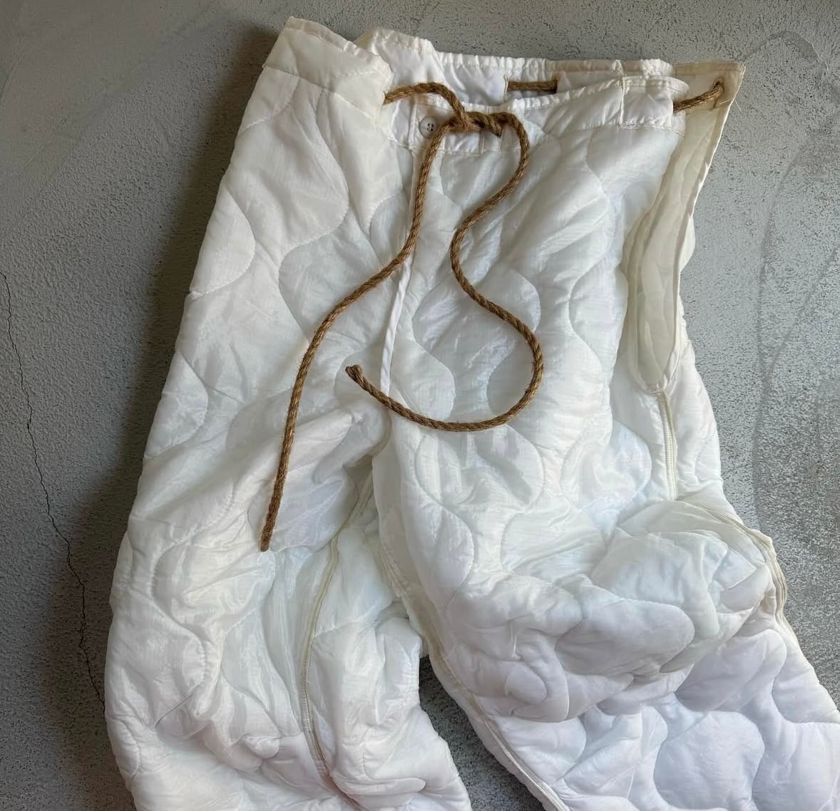 ・非常に珍しいスノーカモのキルティングライナーパンツ。