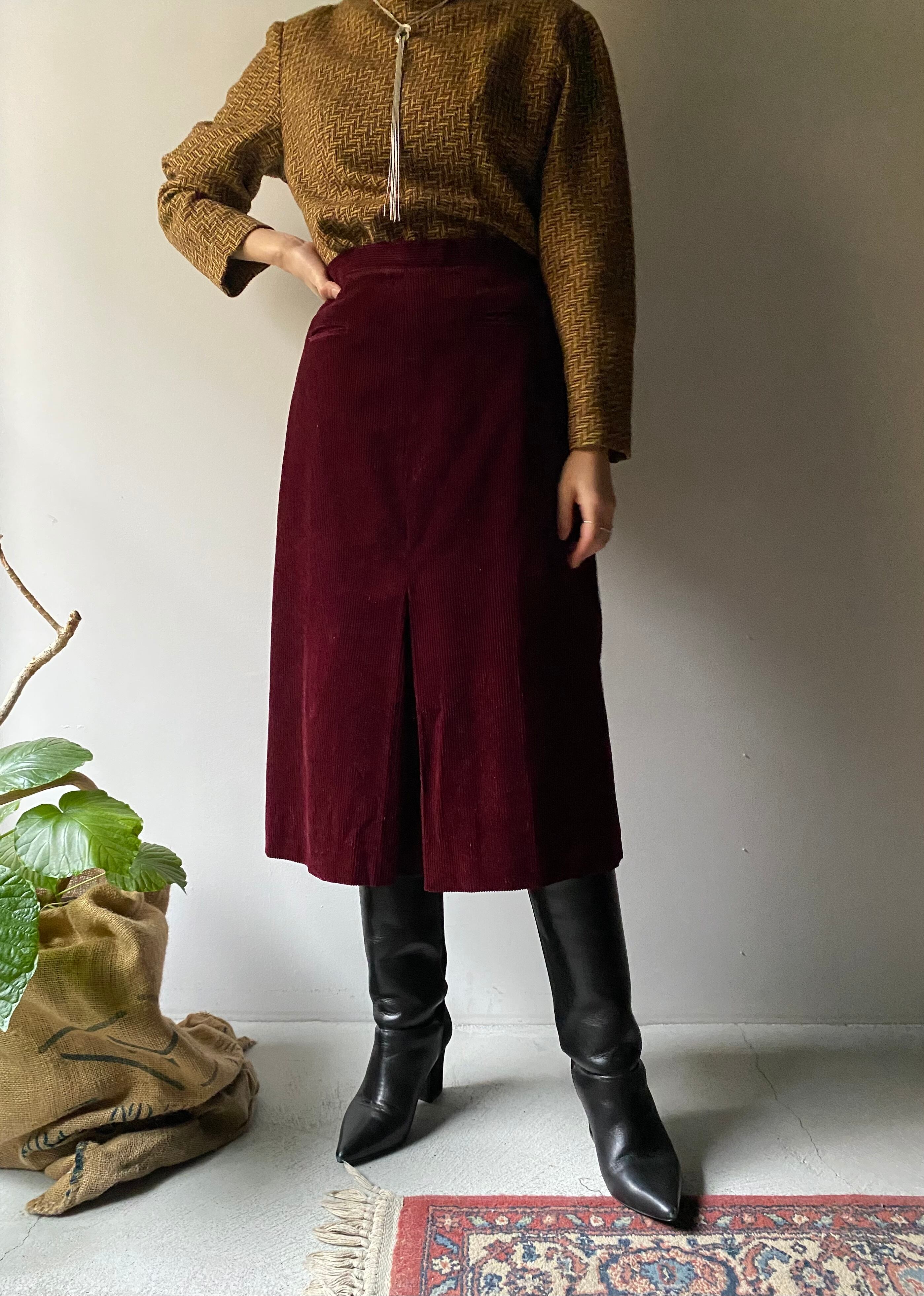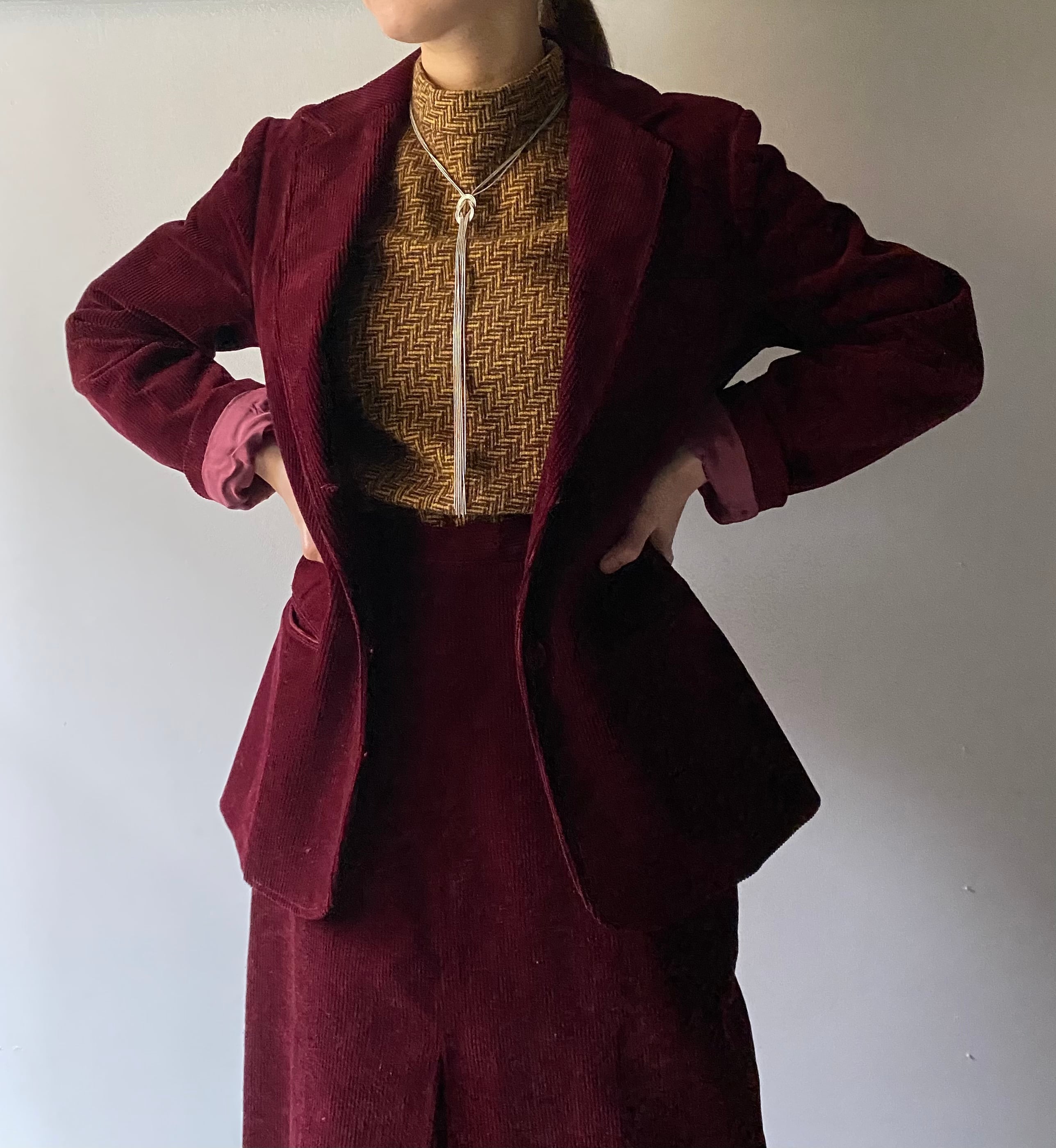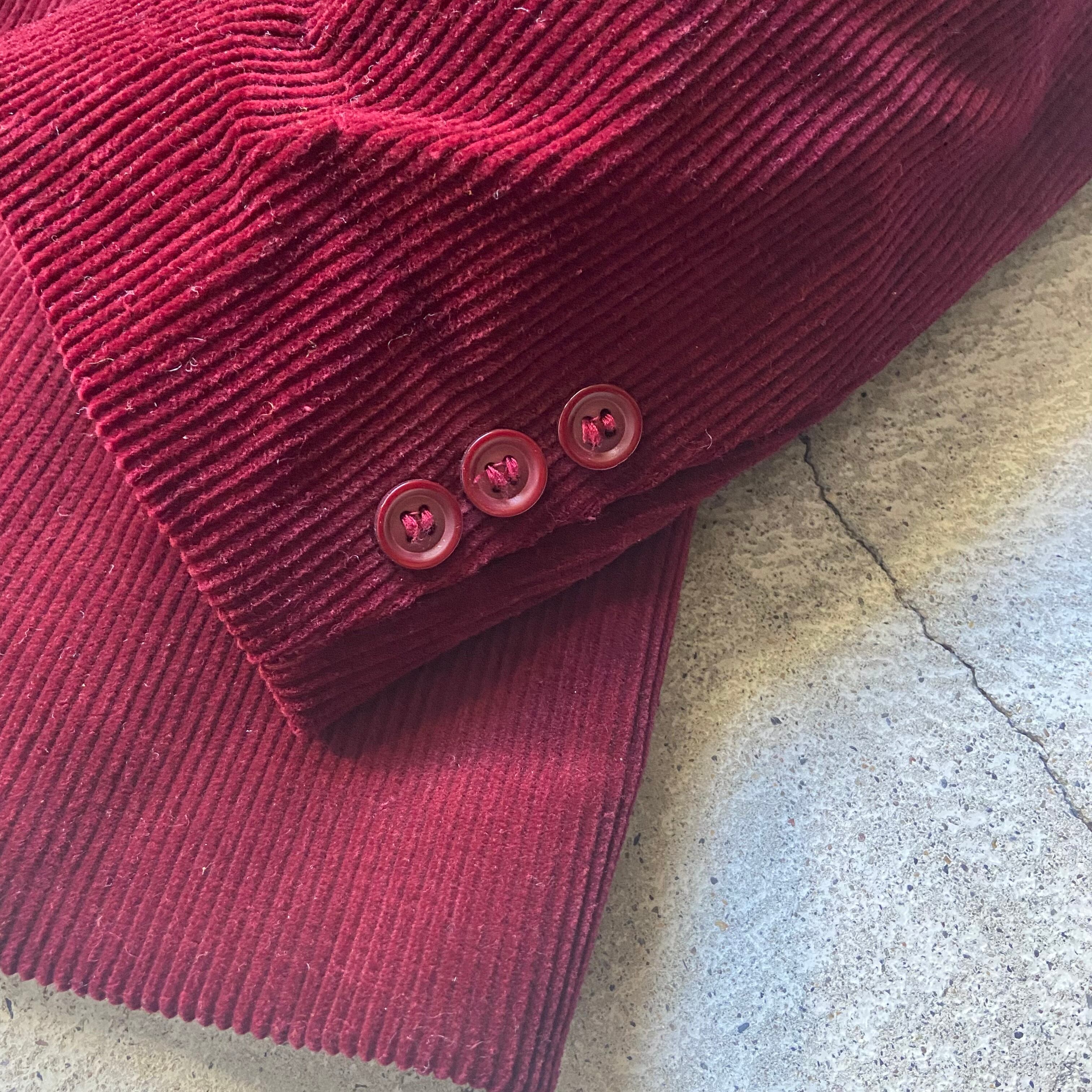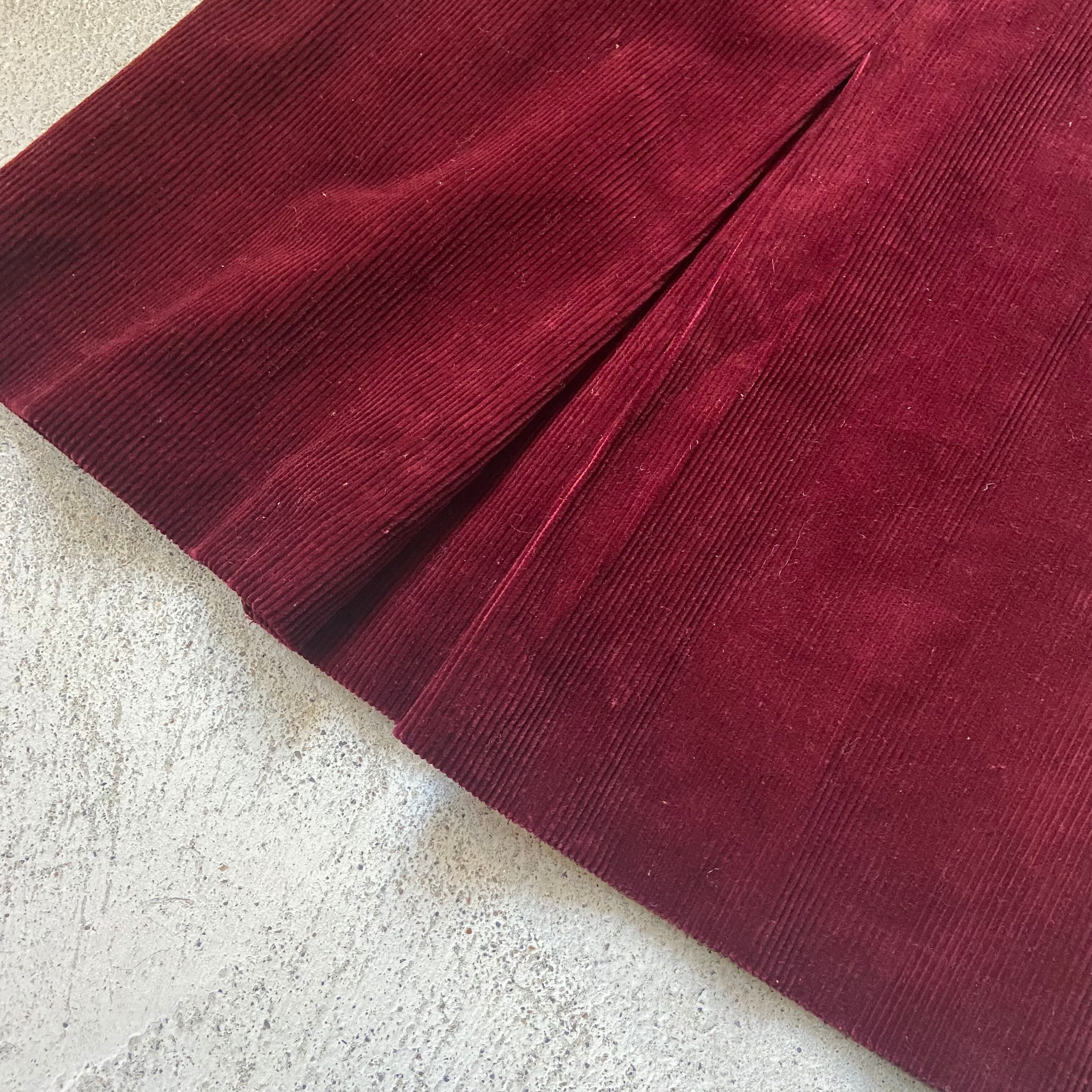 ・深みのある綺麗なボルドーカラーが印象的なコーデュロイ素材のセットアップ。