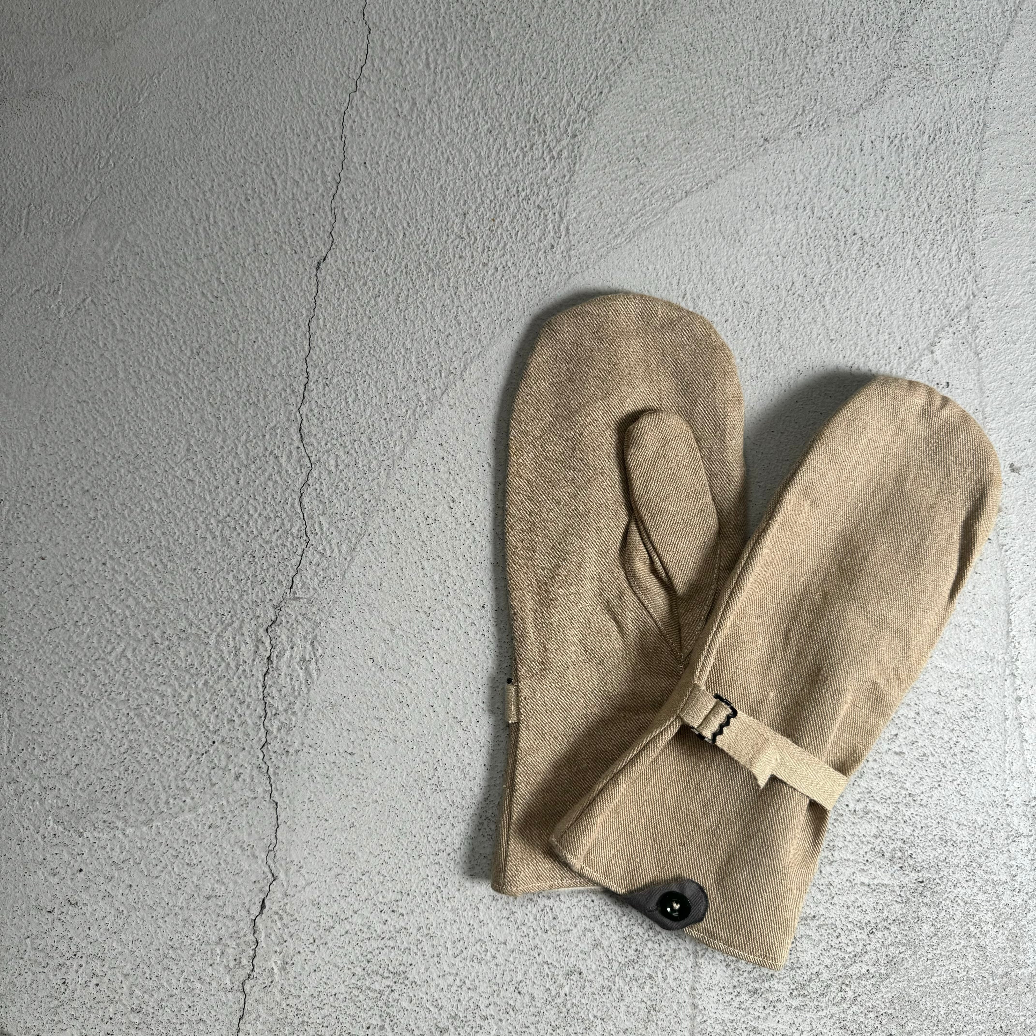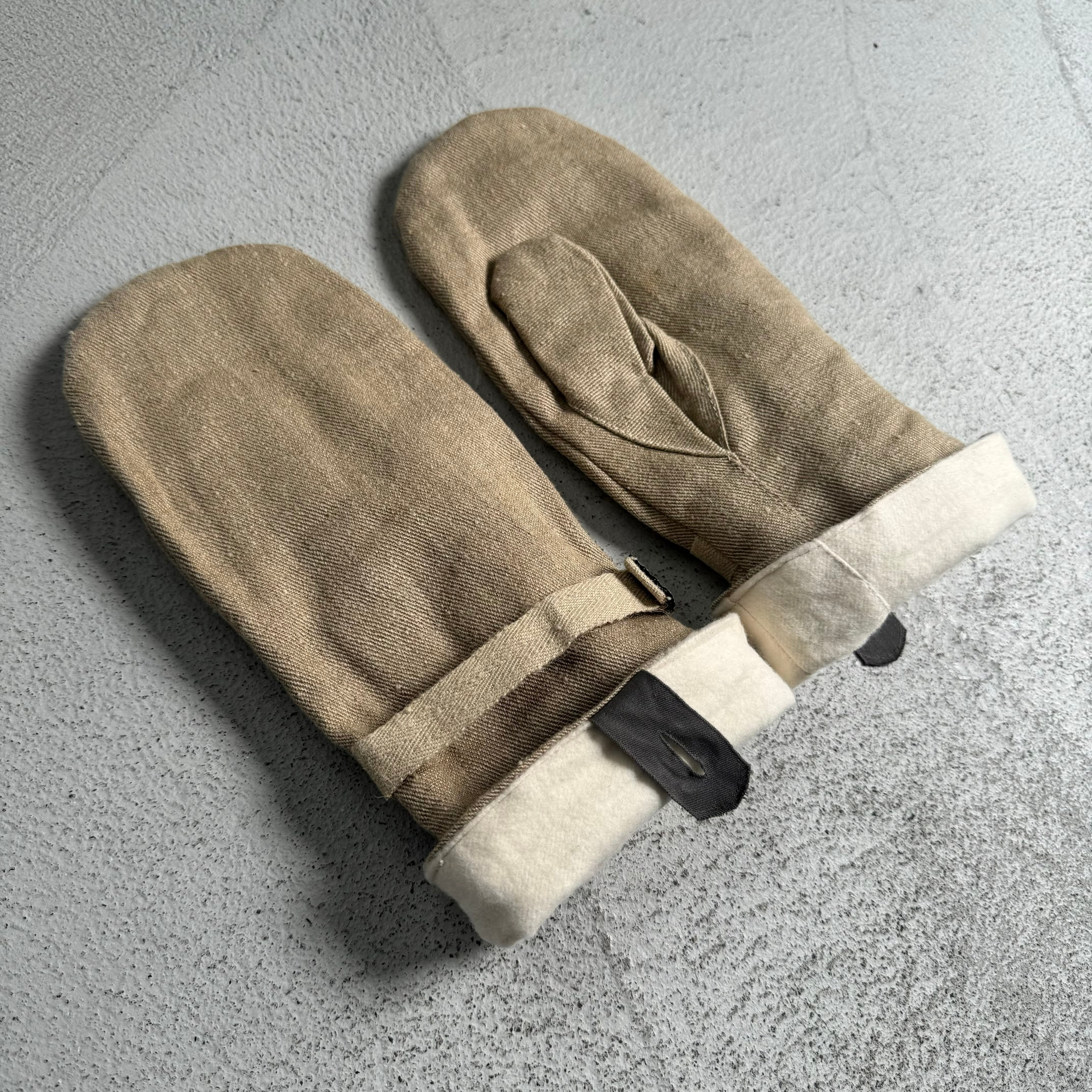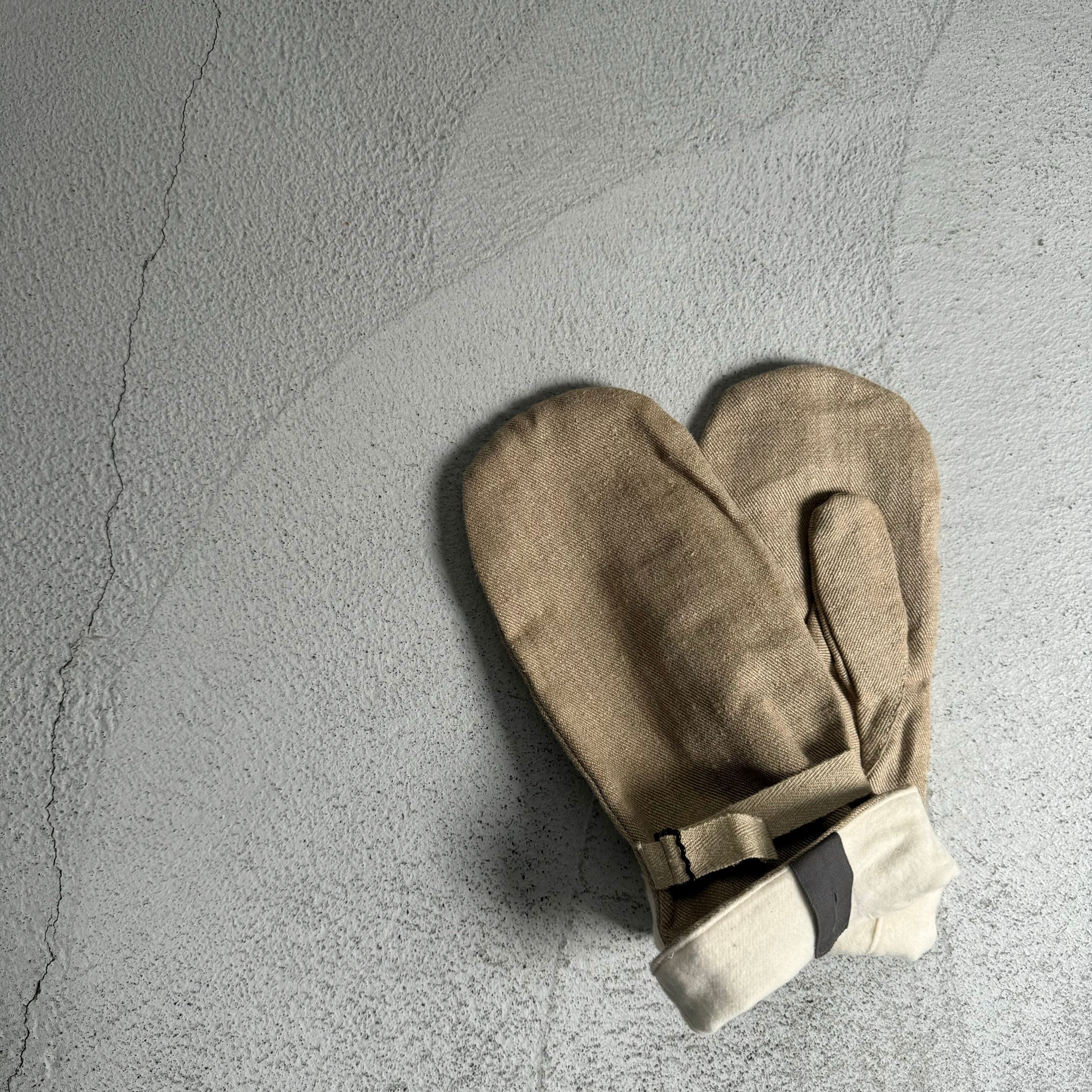 【dead stock】60’s Swiss military cotton canvas × wool liner mittens